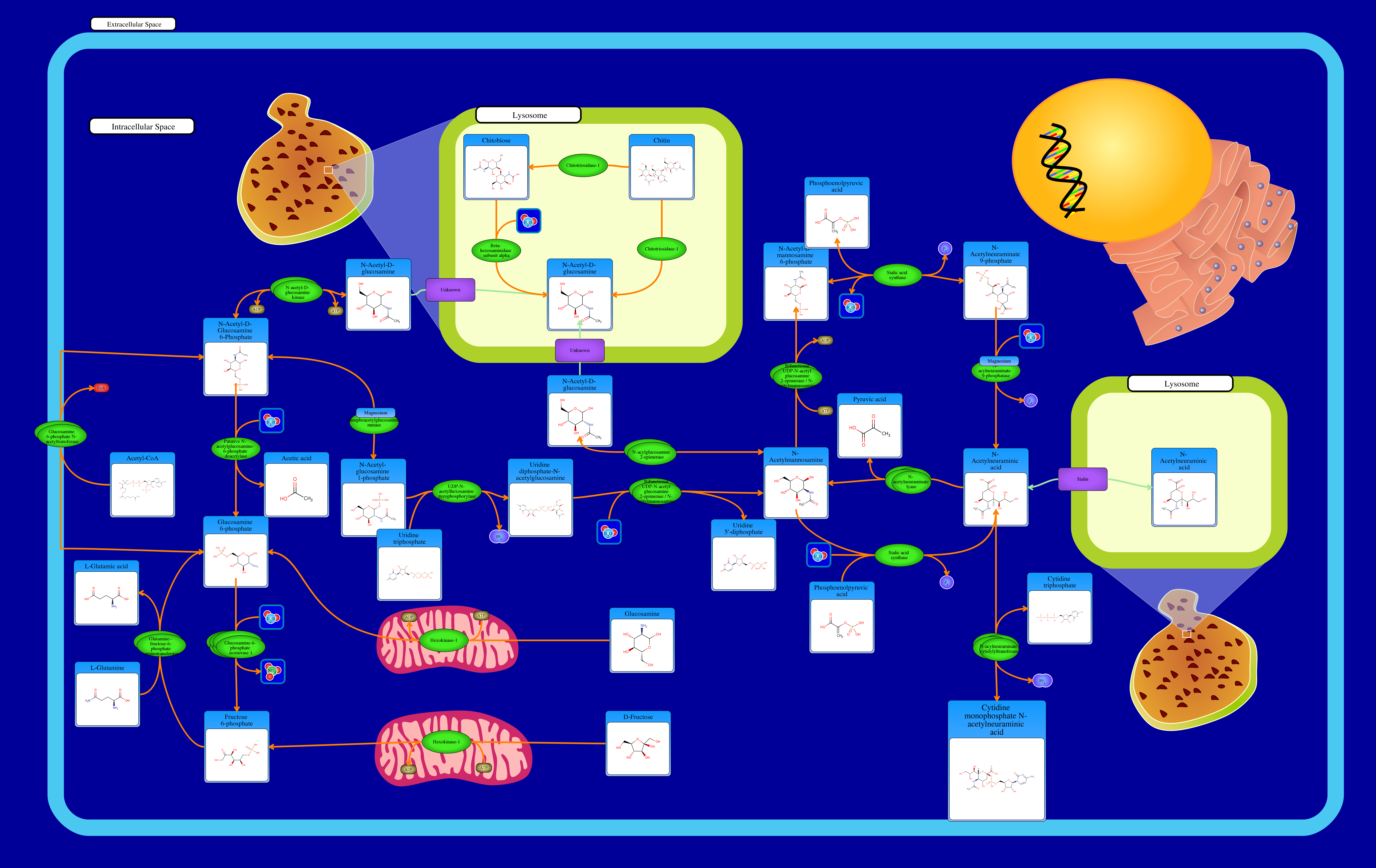 Enter relative concentration values (without units). Elements will be highlighted in a color gradient where red = lowest concentration and green = highest concentration. For the best results, view the pathway in Black and White.