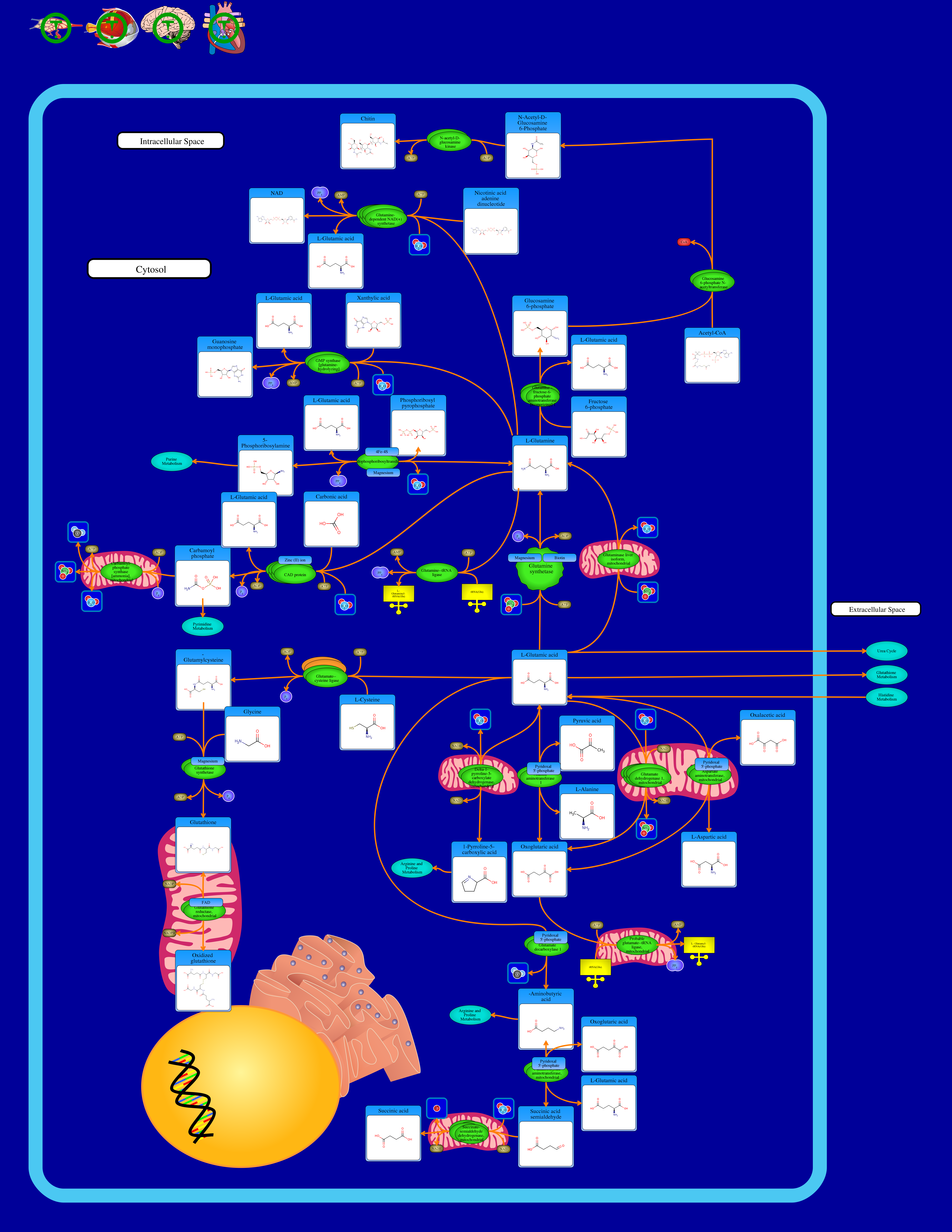 Yelamanchi SD, Jayaram S, Thomas JK, Gundimeda S, Khan AA, Singhal A, Keshava Prasad TS, Pandey A, Somani BL, Gowda H: A pathway map of glutamate metabolism. J Cell Commun Signal. 2016 Mar;10(1):69-75. doi: 10.1007/s12079-015-0315-5. Epub 2015 Dec 3.