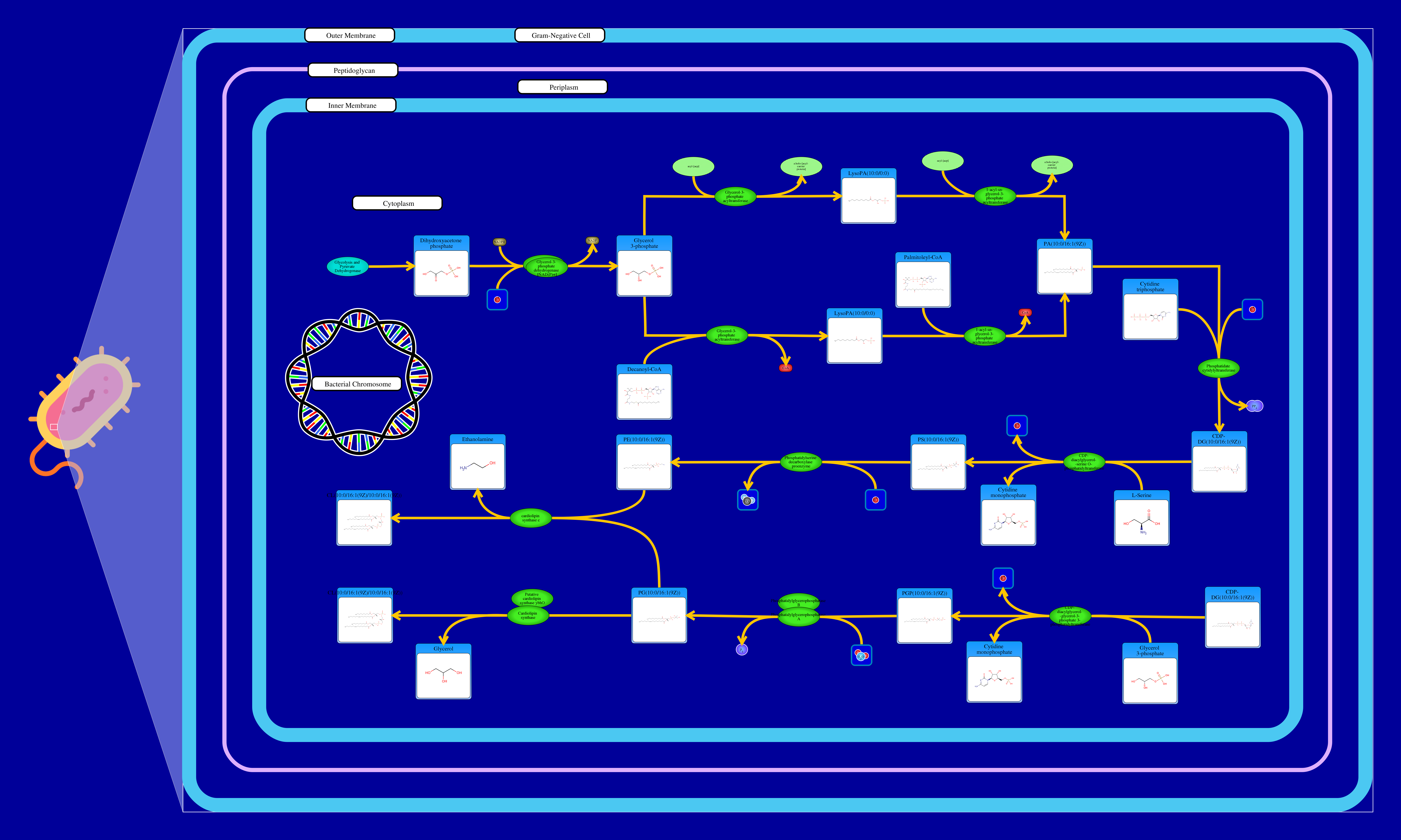 Phospholipids are membrane components in E. coli. The major phospholipids of E. coli are phosphatidylethanolamine, phosphatidylglycerol, and cardiolipin. All phospholipids contain sn-glycerol-3-phosphate esterified with fatty acids at the sn-1 and sn-2 positions. The reaction starts from a glycerone phosphate (dihydroxyacetone phosphate) produced in glycolysis. The glycerone phosphate is transformed into an sn-glycerol 3-phosphate (glycerol 3 phosphate) by NADPH-driven glycerol-3-phosphate dehydrogenase. sn-Glycerol 3-phosphate is transformed to a 1-acyl-sn-glycerol 3-phosphate (lysophosphatidic acid). This can be achieved by an sn-glycerol-3-phosphate acyltransferase that interacts either with a long-chain acyl-CoA or with an acyl-[acp]. The 1-acyl-sn-glycerol 3-phosphate is transformed into a 1,2-diacyl-sn-glycerol 3-phosphate (phosphatidic acid) through a 1-acylglycerol-3-phosphate O-acyltransferase. This compound is then converted into a CPD-diacylglycerol through a CTP phosphatidate cytididyltransferase. CPD-diacylglycerol can be transformed either into an L-1-phosphatidylserine or an L-1-phosphatidylglycerol-phosphate through a phosphatidylserine synthase or a phosphatidylglycerophosphate synthase, respectively. The L-1-phosphatidylserine transforms into L-1-phosphatidylethanolamine through a phosphatidylserine decarboxylase. On the other hand, L-1-phosphatidylglycerol-phosphate gets transformed into an L-1-phosphatidyl-glycerol through a phosphatidylglycerophosphatase. These 2 products combine to produce a cardiolipin and an ethanolamine. The L-1 phosphatidyl-glycerol can also interact with cardiolipin synthase resulting in a glycerol and a cardiolipin.