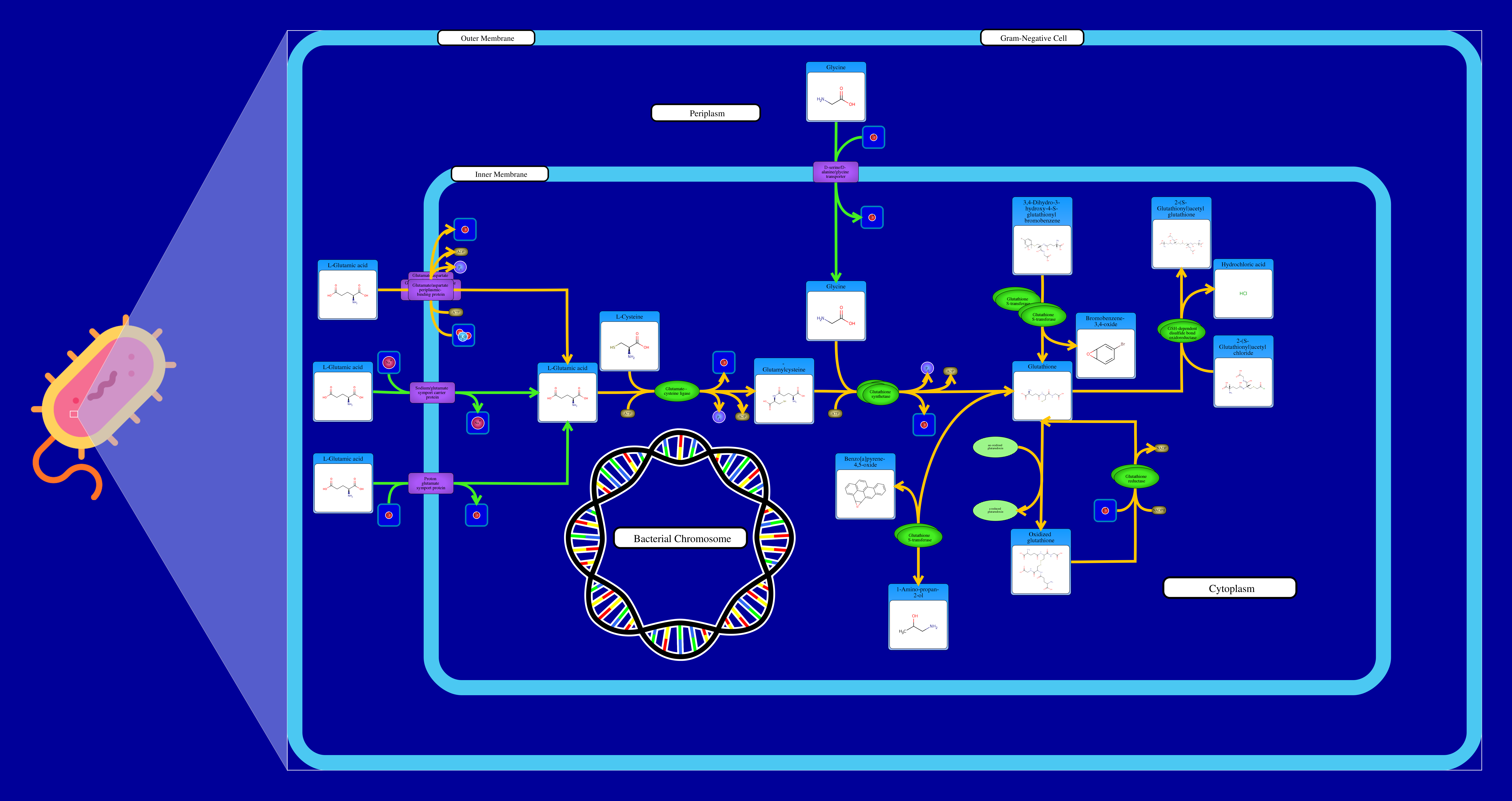 Enter relative concentration values (without units). Elements will be highlighted in a color gradient where red = lowest concentration and green = highest concentration. For the best results, view the pathway in Black and White.