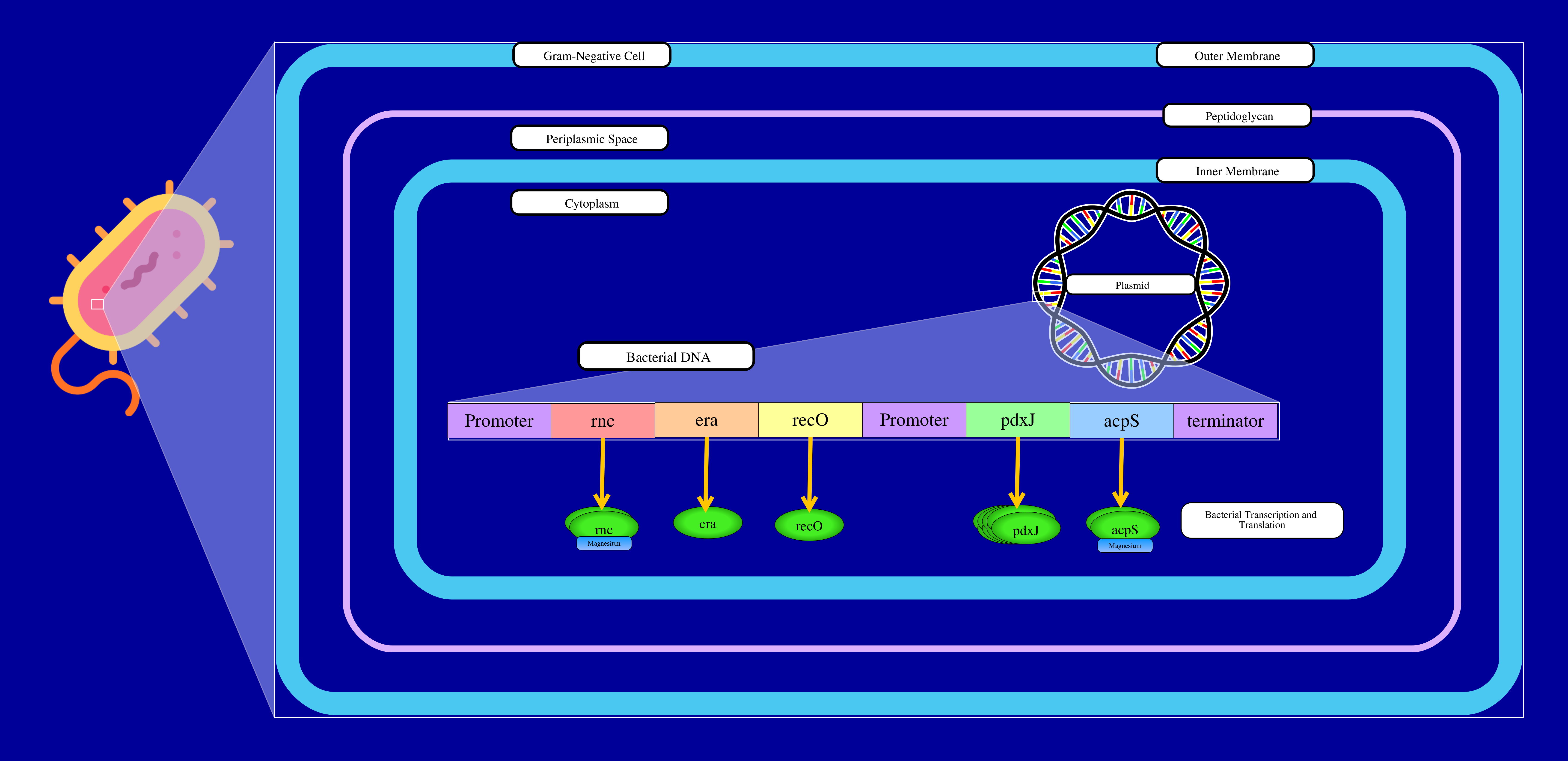 The rnc-era-recO-pdxJ-acpS operon in E. coli contains five genes which encode various proteins. The operon can be transcribed in its entirety, or it can be transcribed from a second promoter before pdxJ, in which case only pdxJ and acpS are transcribed. There are no currently known activators or inhibitors of this operon.