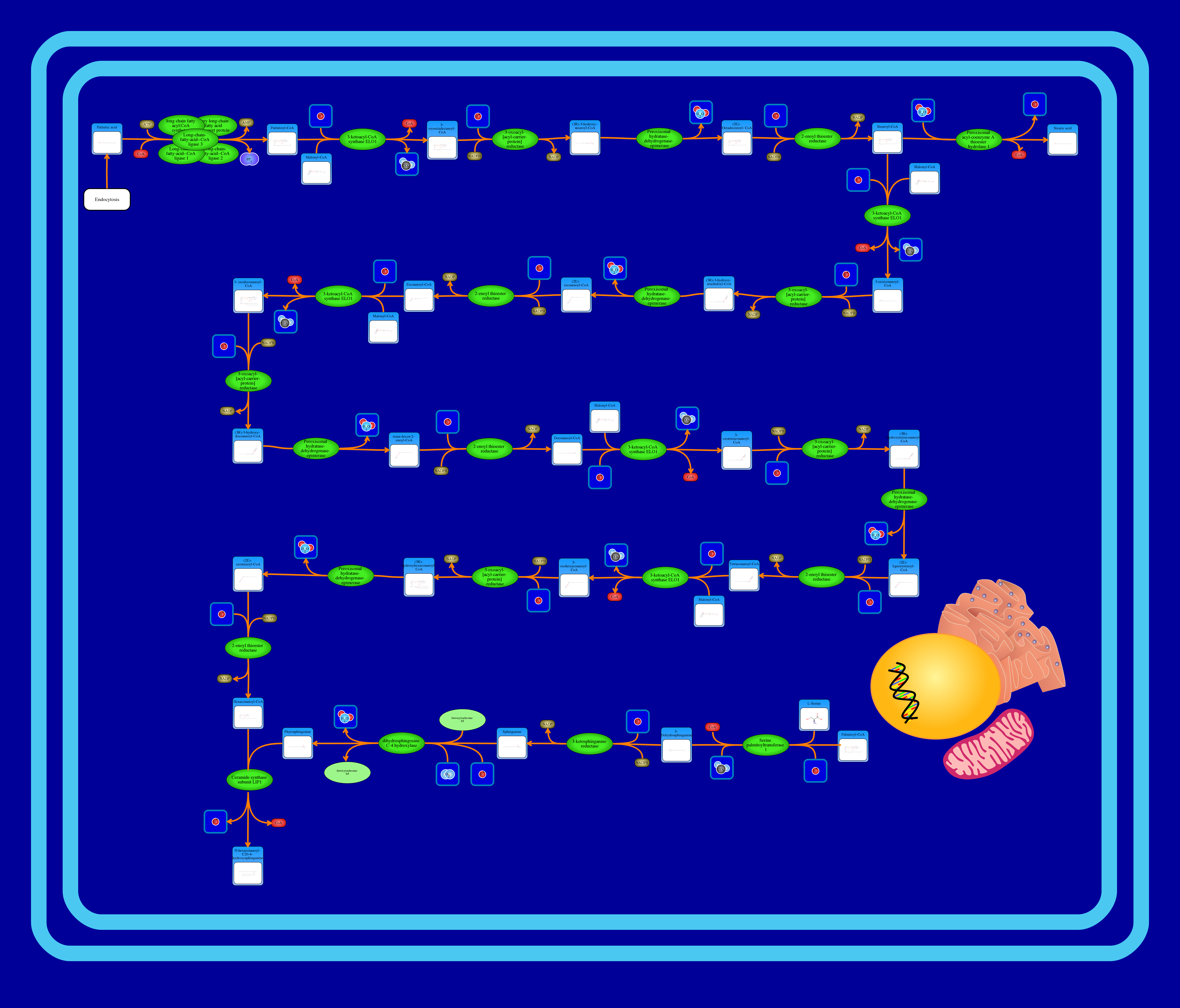 Enter relative concentration values (without units). Elements will be highlighted in a color gradient where red = lowest concentration and green = highest concentration. For the best results, view the pathway in Black and White.
