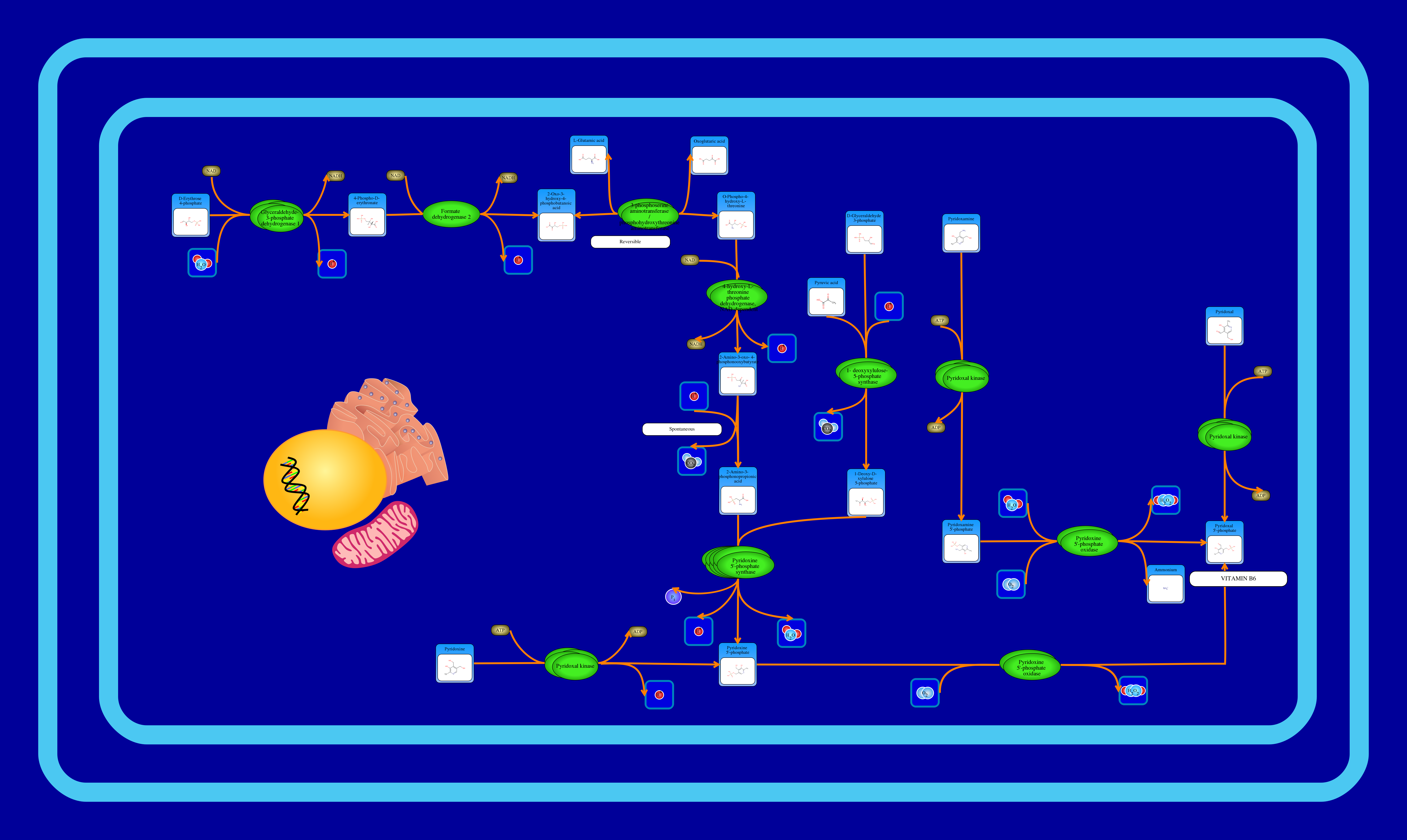 Enter relative concentration values (without units). Elements will be highlighted in a color gradient where red = lowest concentration and green = highest concentration. For the best results, view the pathway in Black and White.