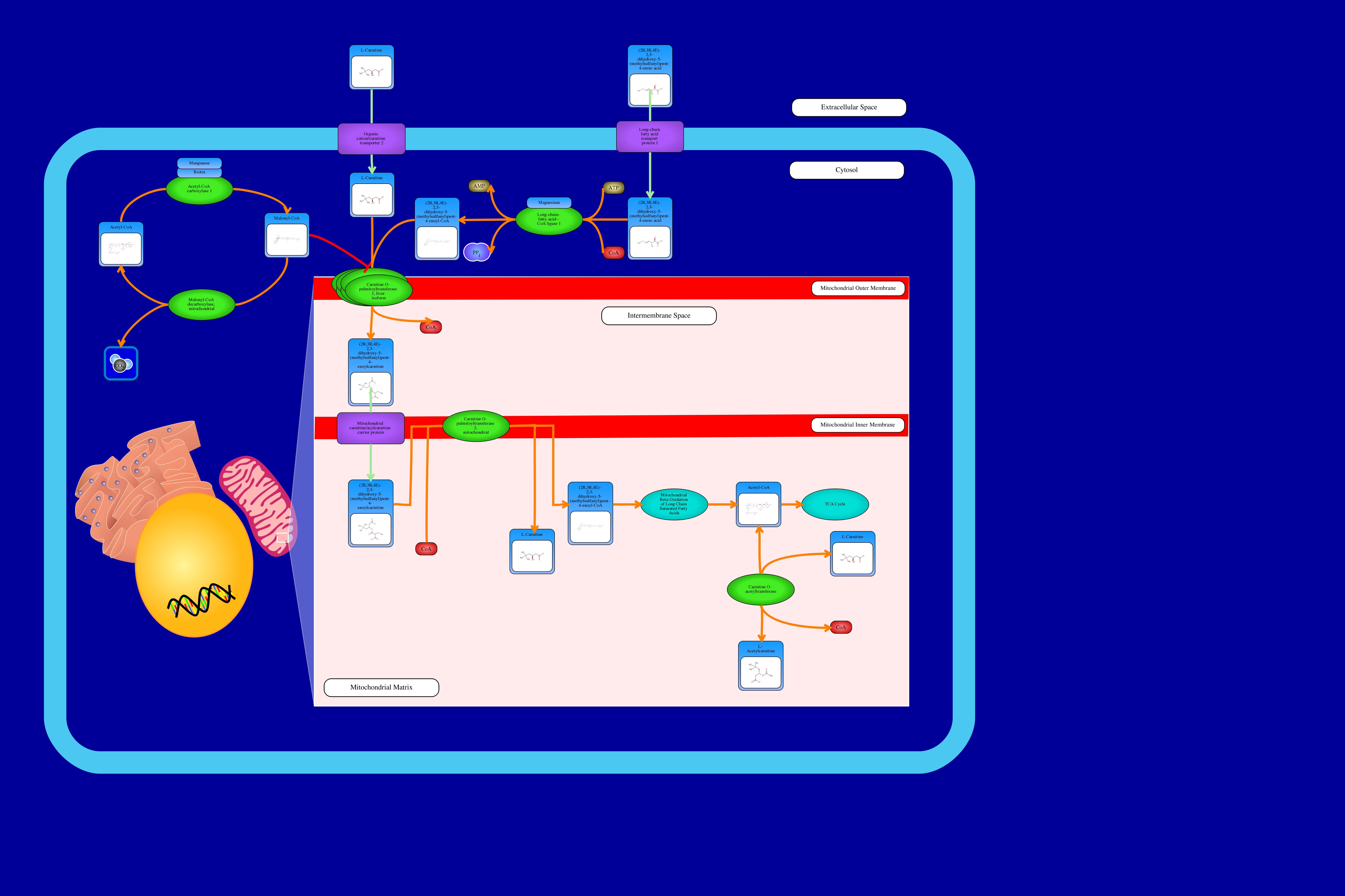 Enter relative concentration values (without units). Elements will be highlighted in a color gradient where red = lowest concentration and green = highest concentration. For the best results, view the pathway in Black and White.