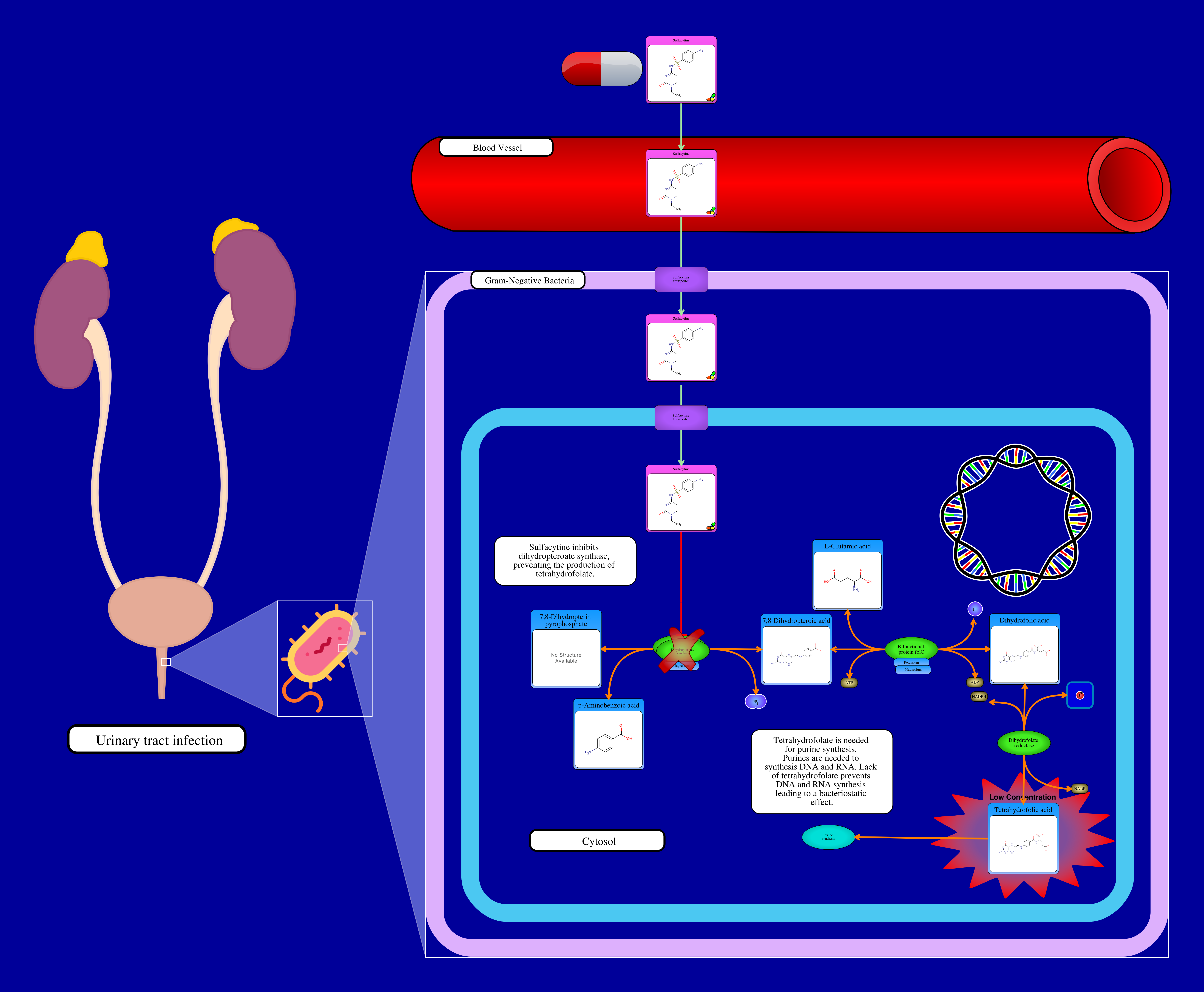 Hughes J, Roberts LC, Coppridge AJ: Sulfacytine: a new sulfonamide. Double-blind comparison with sulfisoxazole in acute uncomplicated urinary tract infections. J Urol. 1975 Dec;114(6):912-4. doi: 10.1016/s0022-5347(17)67173-8.