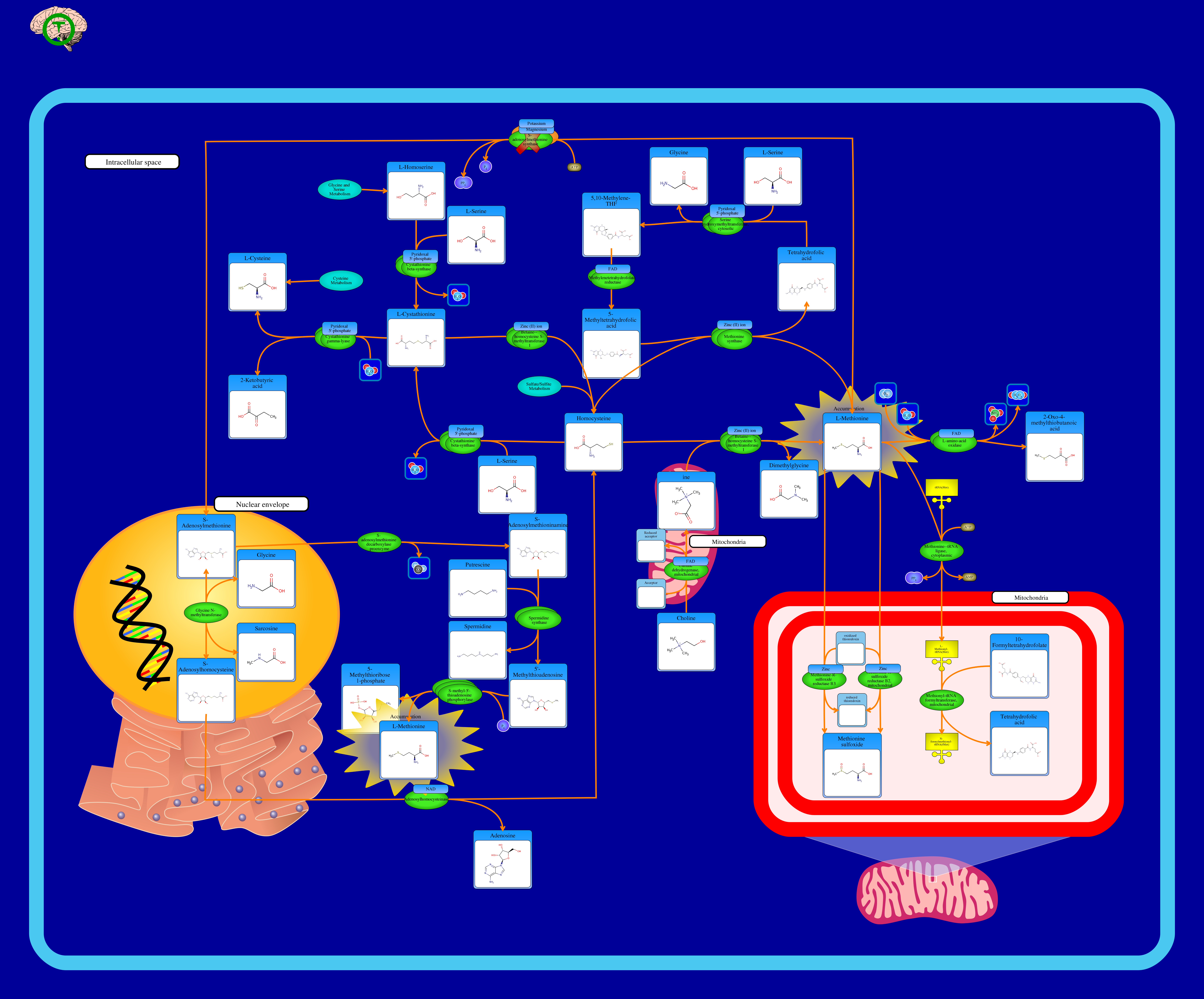 Enter relative concentration values (without units). Elements will be highlighted in a color gradient where red = lowest concentration and green = highest concentration. For the best results, view the pathway in Black and White.