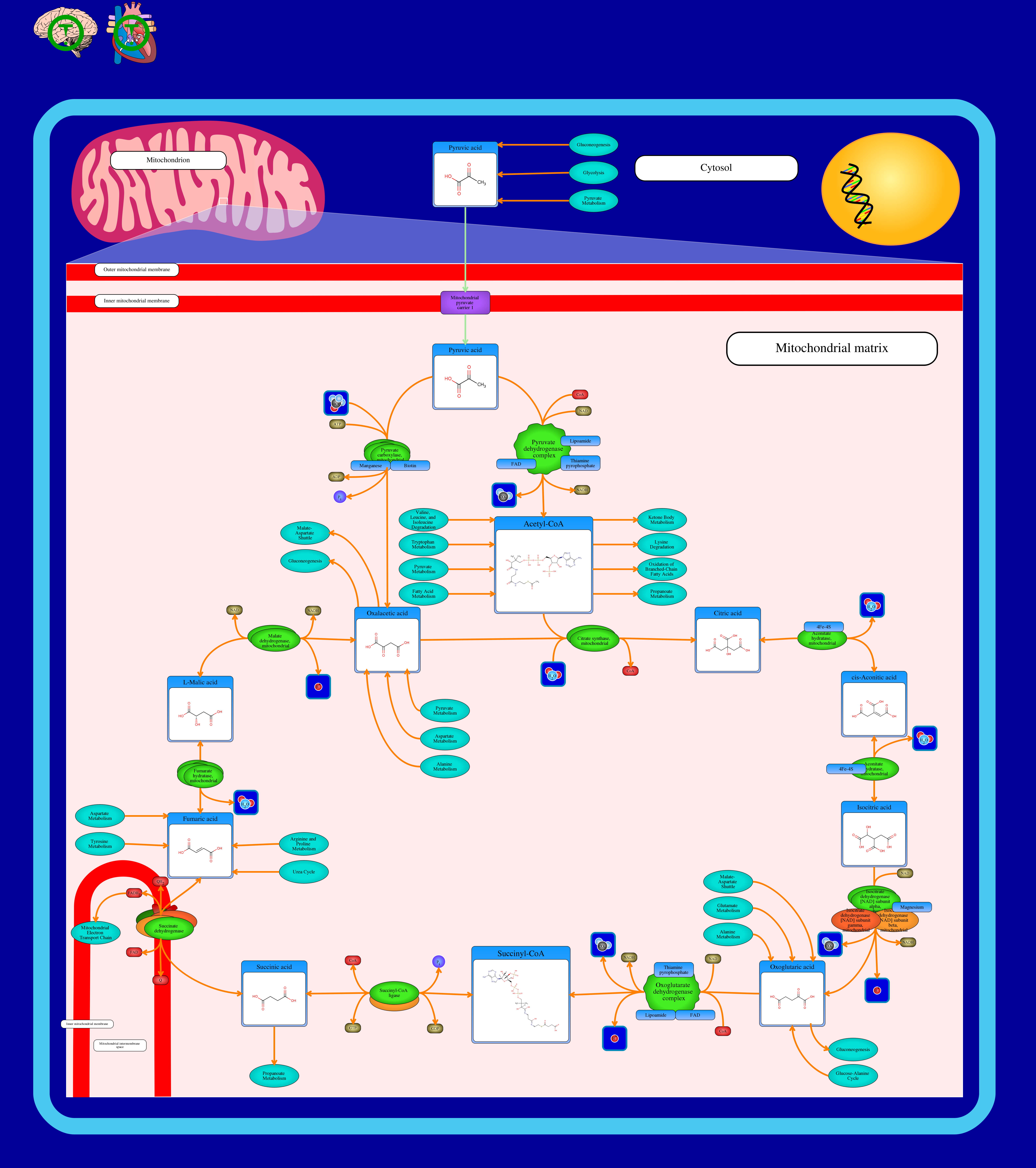 Enter relative concentration values (without units). Elements will be highlighted in a color gradient where red = lowest concentration and green = highest concentration. For the best results, view the pathway in Black and White.