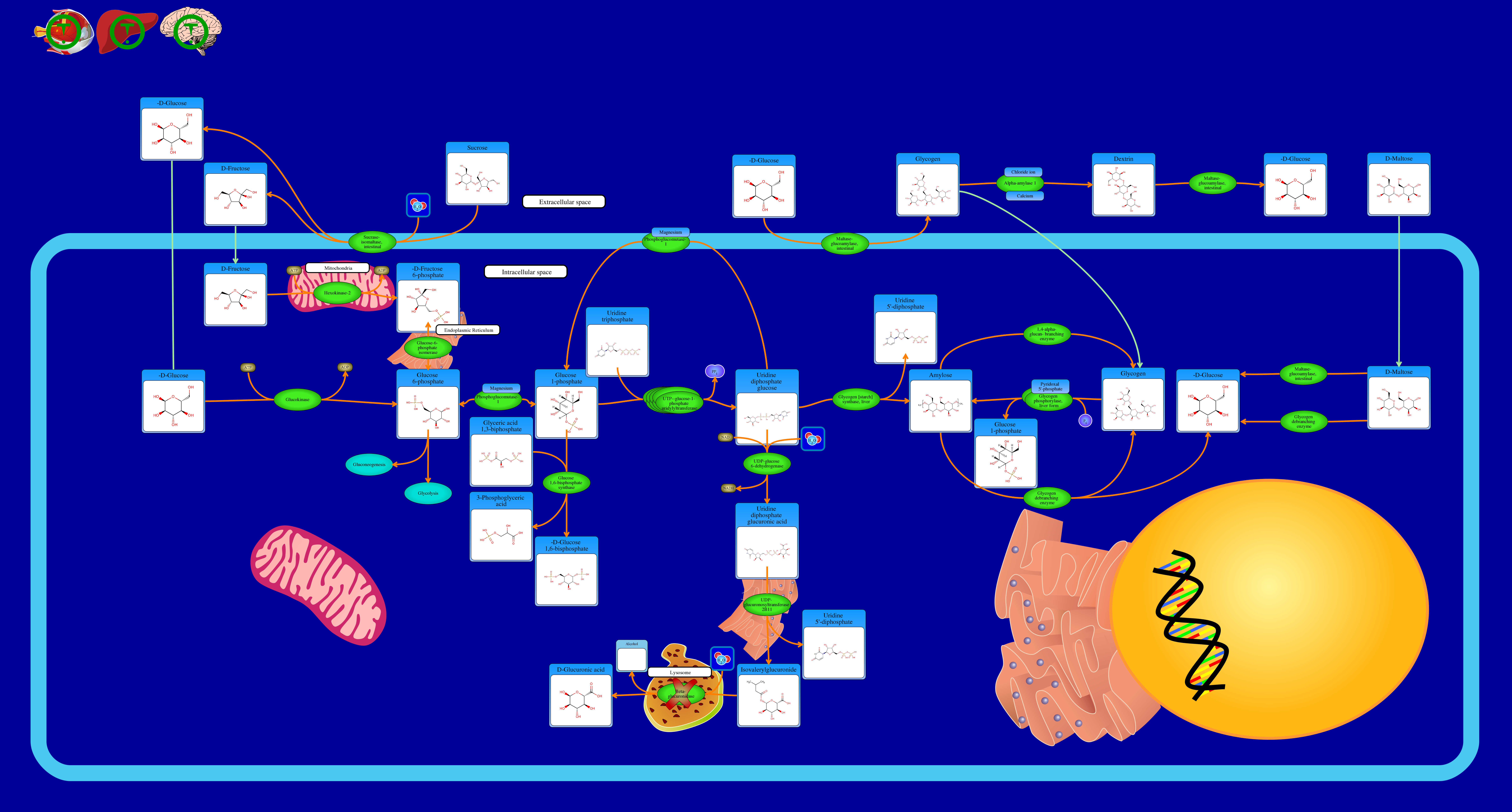 Roach PJ, Depaoli-Roach AA, Hurley TD, Tagliabracci VS: Glycogen and its metabolism: some new developments and old themes. Biochem J. 2012 Feb 1;441(3):763-87. doi: 10.1042/BJ20111416.