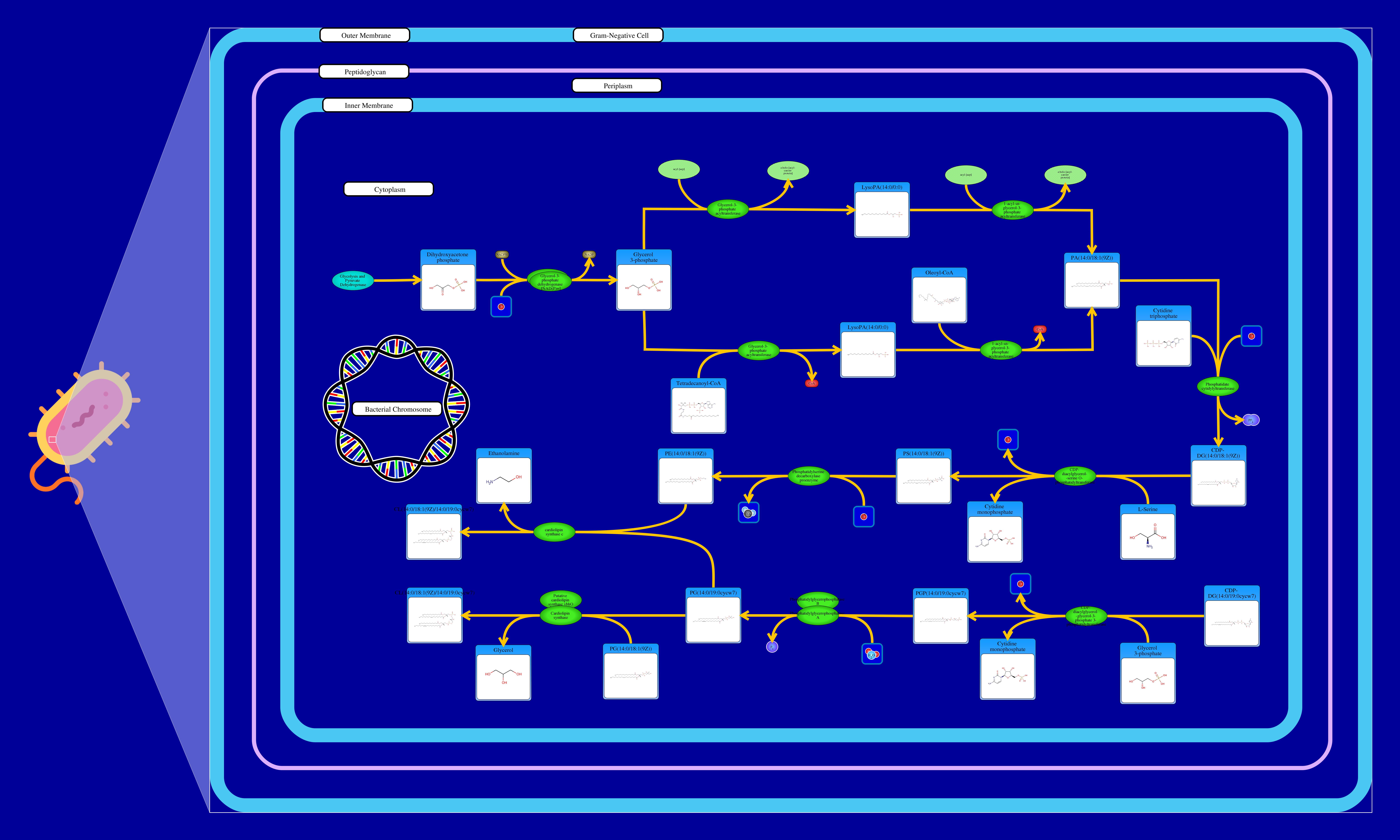 Phospholipids are membrane components in E. coli. The major phospholipids of E. coli are phosphatidylethanolamine, phosphatidylglycerol, and cardiolipin. All phospholipids contain sn-glycerol-3-phosphate esterified with fatty acids at the sn-1 and sn-2 positions. The reaction starts from a glycerone phosphate (dihydroxyacetone phosphate) produced in glycolysis. The glycerone phosphate is transformed into an sn-glycerol 3-phosphate (glycerol 3 phosphate) by NADPH-driven glycerol-3-phosphate dehydrogenase. sn-Glycerol 3-phosphate is transformed to a 1-acyl-sn-glycerol 3-phosphate (lysophosphatidic acid). This can be achieved by an sn-glycerol-3-phosphate acyltransferase that interacts either with a long-chain acyl-CoA or with an acyl-[acp]. The 1-acyl-sn-glycerol 3-phosphate is transformed into a 1,2-diacyl-sn-glycerol 3-phosphate (phosphatidic acid) through a 1-acylglycerol-3-phosphate O-acyltransferase. This compound is then converted into a CPD-diacylglycerol through a CTP phosphatidate cytididyltransferase. CPD-diacylglycerol can be transformed either into an L-1-phosphatidylserine or an L-1-phosphatidylglycerol-phosphate through a phosphatidylserine synthase or a phosphatidylglycerophosphate synthase, respectively. The L-1-phosphatidylserine transforms into L-1-phosphatidylethanolamine through a phosphatidylserine decarboxylase. On the other hand, L-1-phosphatidylglycerol-phosphate gets transformed into an L-1-phosphatidyl-glycerol through a phosphatidylglycerophosphatase. These 2 products combine to produce a cardiolipin and an ethanolamine. The L-1 phosphatidyl-glycerol can also interact with cardiolipin synthase resulting in a glycerol and a cardiolipin.