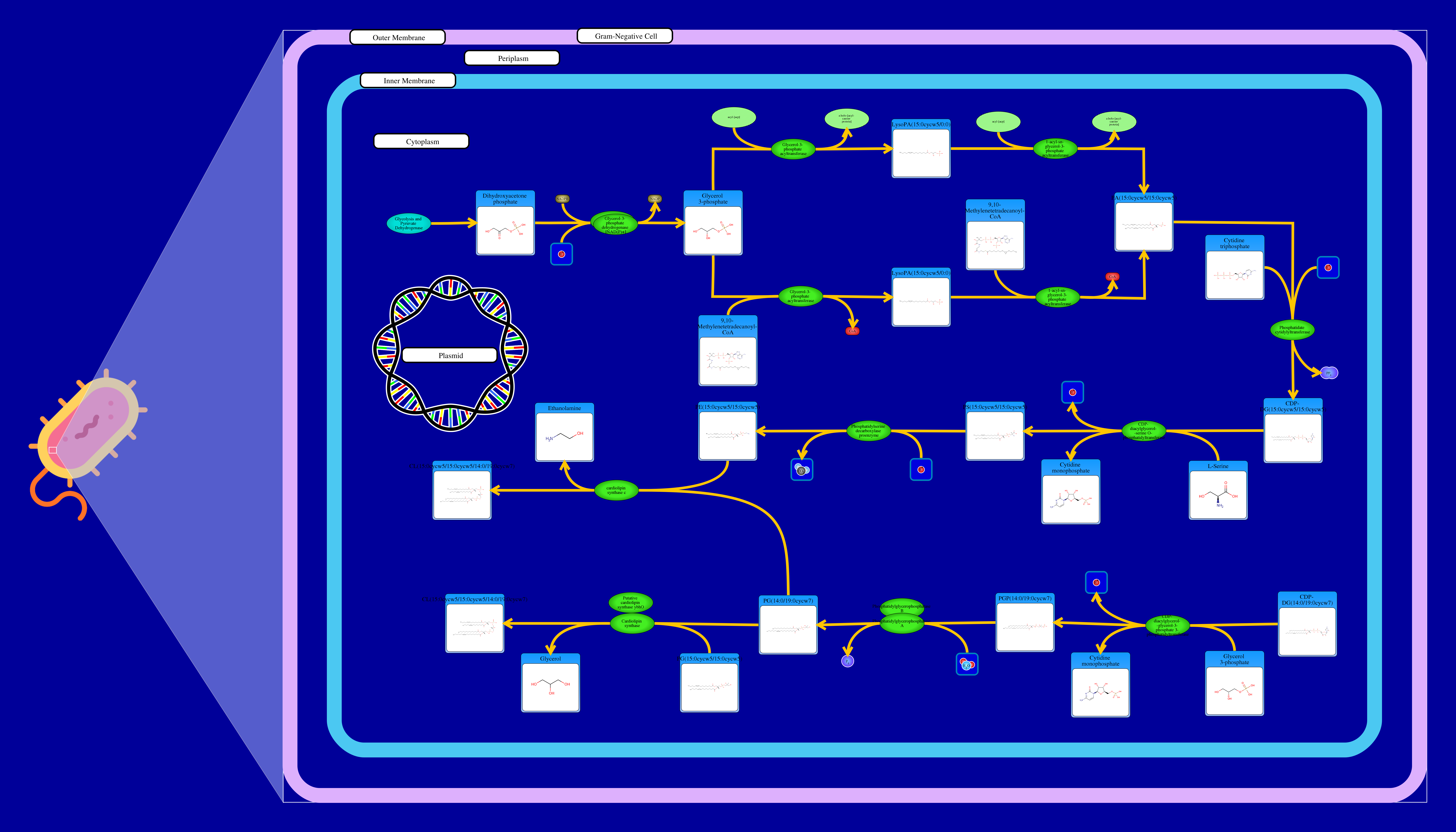 Phospholipids are membrane components in E. coli. The major phospholipids of E. coli are phosphatidylethanolamine, phosphatidylglycerol, and cardiolipin. All phospholipids contain sn-glycerol-3-phosphate esterified with fatty acids at the sn-1 and sn-2 positions. The reaction starts from a glycerone phosphate (dihydroxyacetone phosphate) produced in glycolysis. The glycerone phosphate is transformed into an sn-glycerol 3-phosphate (glycerol 3 phosphate) by NADPH-driven glycerol-3-phosphate dehydrogenase. sn-Glycerol 3-phosphate is transformed to a 1-acyl-sn-glycerol 3-phosphate (lysophosphatidic acid). This can be achieved by an sn-glycerol-3-phosphate acyltransferase that interacts either with a long-chain acyl-CoA or with an acyl-[acp]. The 1-acyl-sn-glycerol 3-phosphate is transformed into a 1,2-diacyl-sn-glycerol 3-phosphate (phosphatidic acid) through a 1-acylglycerol-3-phosphate O-acyltransferase. This compound is then converted into a CPD-diacylglycerol through a CTP phosphatidate cytididyltransferase. CPD-diacylglycerol can be transformed either into an L-1-phosphatidylserine or an L-1-phosphatidylglycerol-phosphate through a phosphatidylserine synthase or a phosphatidylglycerophosphate synthase, respectively. The L-1-phosphatidylserine transforms into L-1-phosphatidylethanolamine through a phosphatidylserine decarboxylase. On the other hand, L-1-phosphatidylglycerol-phosphate gets transformed into an L-1-phosphatidyl-glycerol through a phosphatidylglycerophosphatase. These 2 products combine to produce a cardiolipin and an ethanolamine. The L-1 phosphatidyl-glycerol can also interact with cardiolipin synthase resulting in a glycerol and a cardiolipin.
