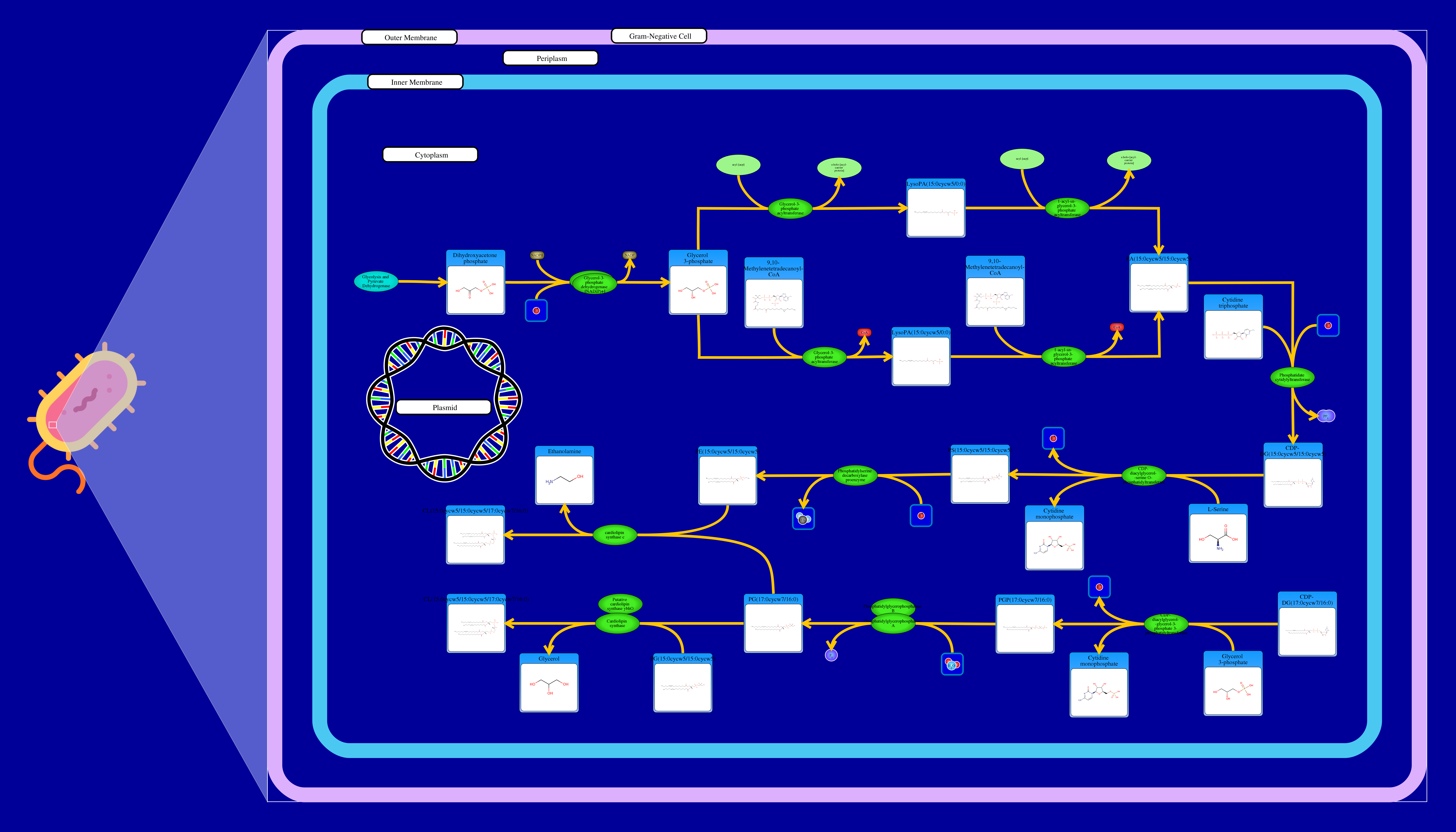 Phospholipids are membrane components in E. coli. The major phospholipids of E. coli are phosphatidylethanolamine, phosphatidylglycerol, and cardiolipin. All phospholipids contain sn-glycerol-3-phosphate esterified with fatty acids at the sn-1 and sn-2 positions. The reaction starts from a glycerone phosphate (dihydroxyacetone phosphate) produced in glycolysis. The glycerone phosphate is transformed into an sn-glycerol 3-phosphate (glycerol 3 phosphate) by NADPH-driven glycerol-3-phosphate dehydrogenase. sn-Glycerol 3-phosphate is transformed to a 1-acyl-sn-glycerol 3-phosphate (lysophosphatidic acid). This can be achieved by an sn-glycerol-3-phosphate acyltransferase that interacts either with a long-chain acyl-CoA or with an acyl-[acp]. The 1-acyl-sn-glycerol 3-phosphate is transformed into a 1,2-diacyl-sn-glycerol 3-phosphate (phosphatidic acid) through a 1-acylglycerol-3-phosphate O-acyltransferase. This compound is then converted into a CPD-diacylglycerol through a CTP phosphatidate cytididyltransferase. CPD-diacylglycerol can be transformed either into an L-1-phosphatidylserine or an L-1-phosphatidylglycerol-phosphate through a phosphatidylserine synthase or a phosphatidylglycerophosphate synthase, respectively. The L-1-phosphatidylserine transforms into L-1-phosphatidylethanolamine through a phosphatidylserine decarboxylase. On the other hand, L-1-phosphatidylglycerol-phosphate gets transformed into an L-1-phosphatidyl-glycerol through a phosphatidylglycerophosphatase. These 2 products combine to produce a cardiolipin and an ethanolamine. The L-1 phosphatidyl-glycerol can also interact with cardiolipin synthase resulting in a glycerol and a cardiolipin.