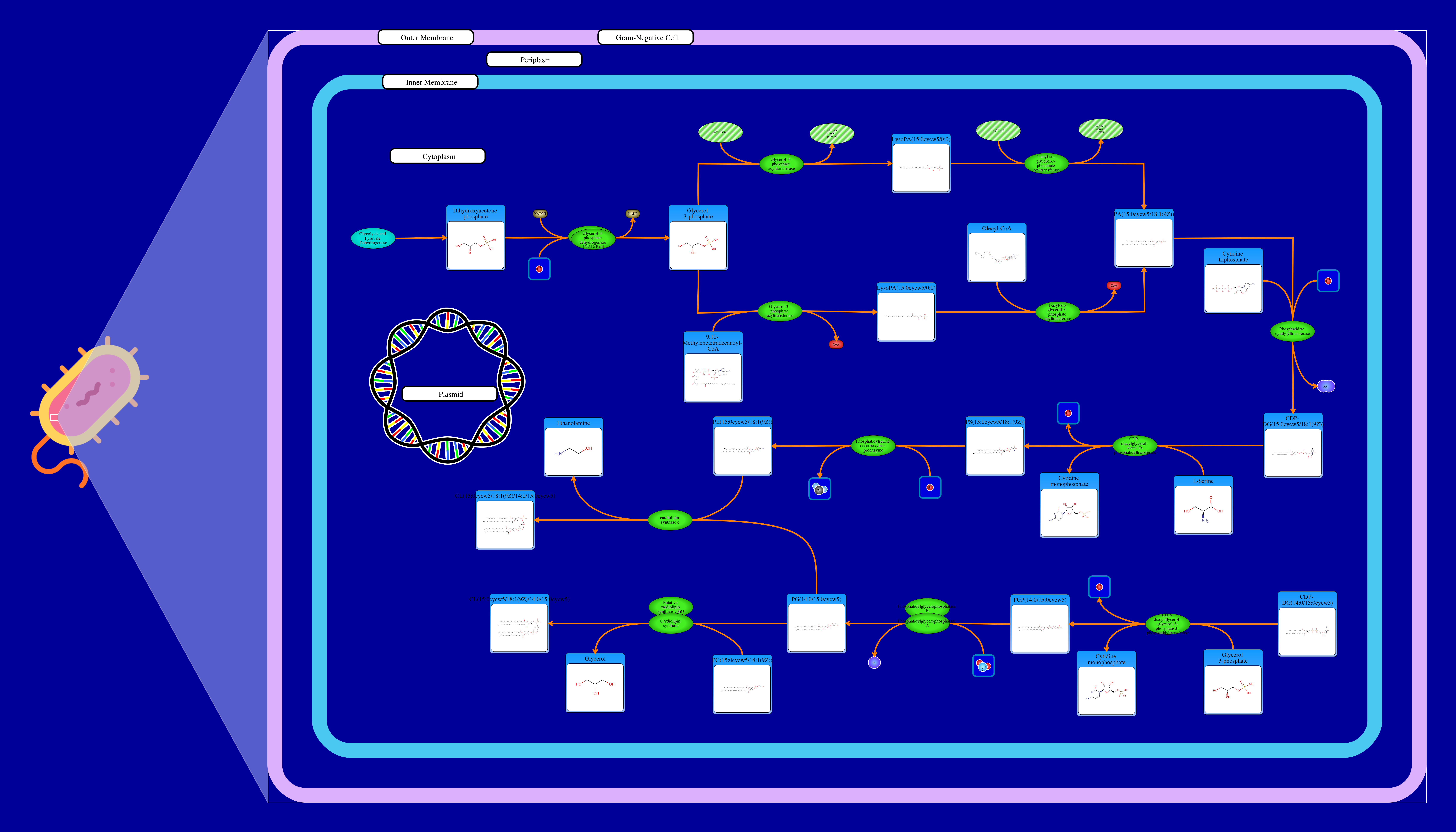 Phospholipids are membrane components in E. coli. The major phospholipids of E. coli are phosphatidylethanolamine, phosphatidylglycerol, and cardiolipin. All phospholipids contain sn-glycerol-3-phosphate esterified with fatty acids at the sn-1 and sn-2 positions. The reaction starts from a glycerone phosphate (dihydroxyacetone phosphate) produced in glycolysis. The glycerone phosphate is transformed into an sn-glycerol 3-phosphate (glycerol 3 phosphate) by NADPH-driven glycerol-3-phosphate dehydrogenase. sn-Glycerol 3-phosphate is transformed to a 1-acyl-sn-glycerol 3-phosphate (lysophosphatidic acid). This can be achieved by an sn-glycerol-3-phosphate acyltransferase that interacts either with a long-chain acyl-CoA or with an acyl-[acp]. The 1-acyl-sn-glycerol 3-phosphate is transformed into a 1,2-diacyl-sn-glycerol 3-phosphate (phosphatidic acid) through a 1-acylglycerol-3-phosphate O-acyltransferase. This compound is then converted into a CPD-diacylglycerol through a CTP phosphatidate cytididyltransferase. CPD-diacylglycerol can be transformed either into an L-1-phosphatidylserine or an L-1-phosphatidylglycerol-phosphate through a phosphatidylserine synthase or a phosphatidylglycerophosphate synthase, respectively. The L-1-phosphatidylserine transforms into L-1-phosphatidylethanolamine through a phosphatidylserine decarboxylase. On the other hand, L-1-phosphatidylglycerol-phosphate gets transformed into an L-1-phosphatidyl-glycerol through a phosphatidylglycerophosphatase. These 2 products combine to produce a cardiolipin and an ethanolamine. The L-1 phosphatidyl-glycerol can also interact with cardiolipin synthase resulting in a glycerol and a cardiolipin.