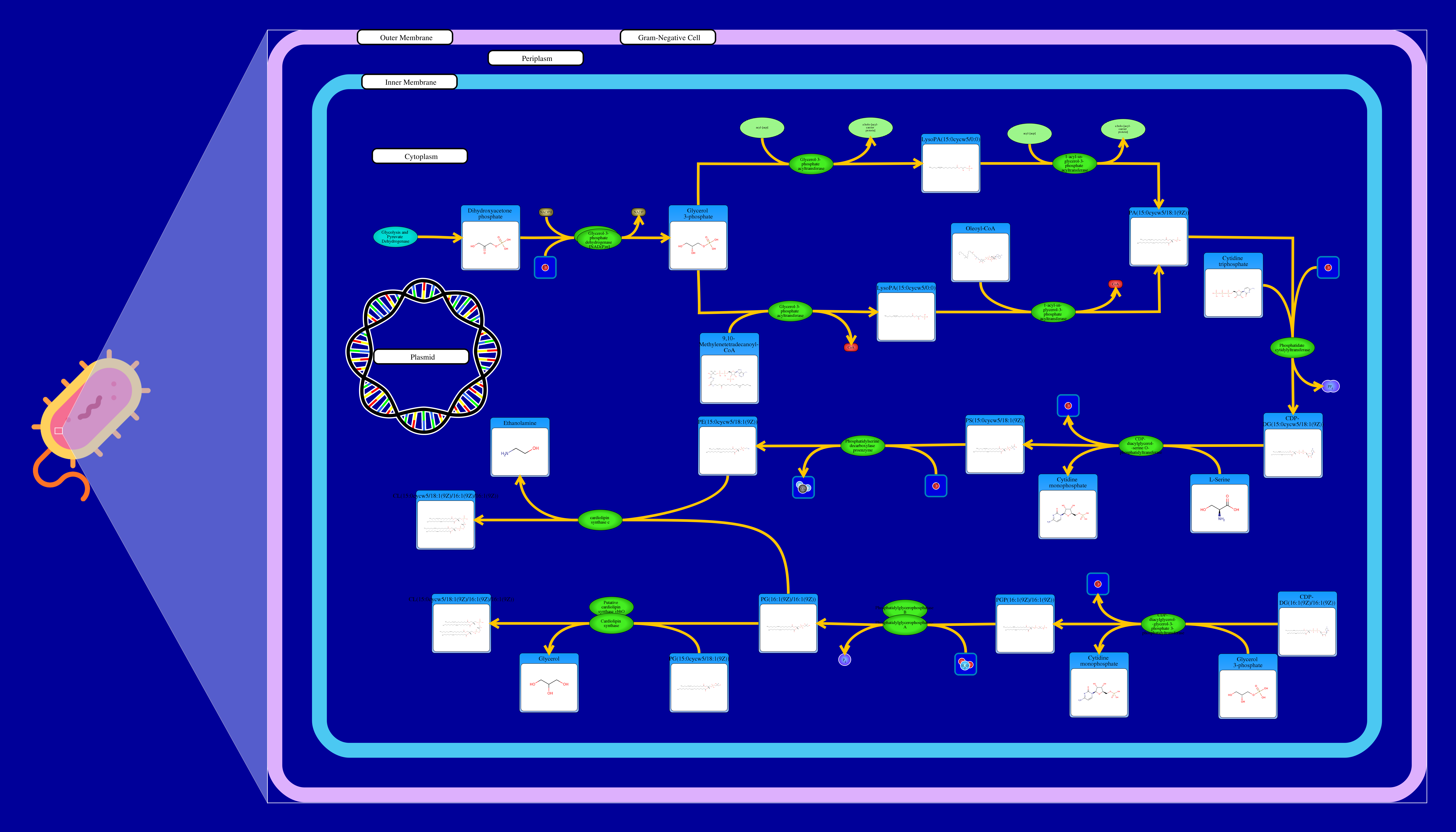 Phospholipids are membrane components in E. coli. The major phospholipids of E. coli are phosphatidylethanolamine, phosphatidylglycerol, and cardiolipin. All phospholipids contain sn-glycerol-3-phosphate esterified with fatty acids at the sn-1 and sn-2 positions. The reaction starts from a glycerone phosphate (dihydroxyacetone phosphate) produced in glycolysis. The glycerone phosphate is transformed into an sn-glycerol 3-phosphate (glycerol 3 phosphate) by NADPH-driven glycerol-3-phosphate dehydrogenase. sn-Glycerol 3-phosphate is transformed to a 1-acyl-sn-glycerol 3-phosphate (lysophosphatidic acid). This can be achieved by an sn-glycerol-3-phosphate acyltransferase that interacts either with a long-chain acyl-CoA or with an acyl-[acp]. The 1-acyl-sn-glycerol 3-phosphate is transformed into a 1,2-diacyl-sn-glycerol 3-phosphate (phosphatidic acid) through a 1-acylglycerol-3-phosphate O-acyltransferase. This compound is then converted into a CPD-diacylglycerol through a CTP phosphatidate cytididyltransferase. CPD-diacylglycerol can be transformed either into an L-1-phosphatidylserine or an L-1-phosphatidylglycerol-phosphate through a phosphatidylserine synthase or a phosphatidylglycerophosphate synthase, respectively. The L-1-phosphatidylserine transforms into L-1-phosphatidylethanolamine through a phosphatidylserine decarboxylase. On the other hand, L-1-phosphatidylglycerol-phosphate gets transformed into an L-1-phosphatidyl-glycerol through a phosphatidylglycerophosphatase. These 2 products combine to produce a cardiolipin and an ethanolamine. The L-1 phosphatidyl-glycerol can also interact with cardiolipin synthase resulting in a glycerol and a cardiolipin.