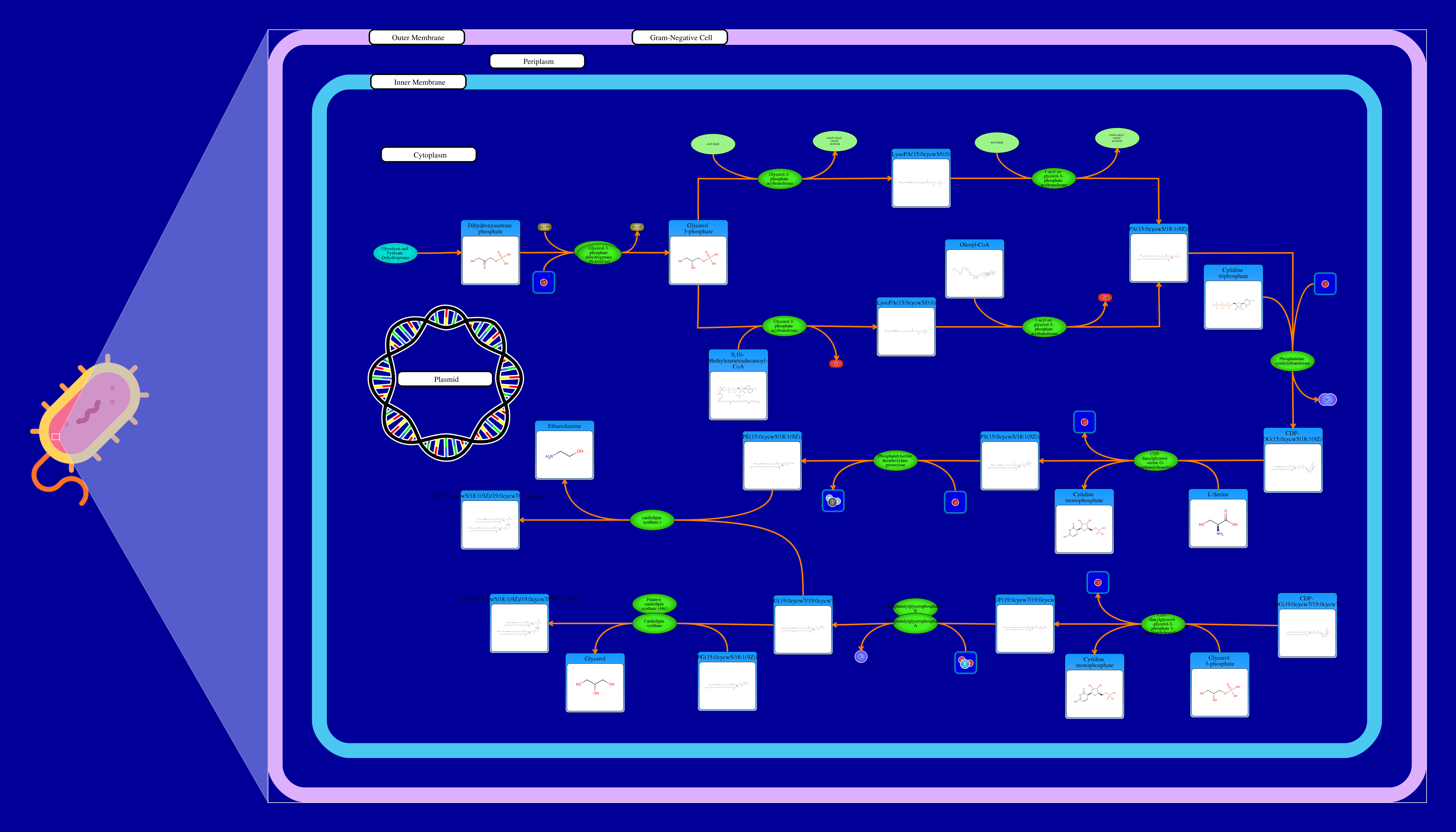 Phospholipids are membrane components in E. coli. The major phospholipids of E. coli are phosphatidylethanolamine, phosphatidylglycerol, and cardiolipin. All phospholipids contain sn-glycerol-3-phosphate esterified with fatty acids at the sn-1 and sn-2 positions. The reaction starts from a glycerone phosphate (dihydroxyacetone phosphate) produced in glycolysis. The glycerone phosphate is transformed into an sn-glycerol 3-phosphate (glycerol 3 phosphate) by NADPH-driven glycerol-3-phosphate dehydrogenase. sn-Glycerol 3-phosphate is transformed to a 1-acyl-sn-glycerol 3-phosphate (lysophosphatidic acid). This can be achieved by an sn-glycerol-3-phosphate acyltransferase that interacts either with a long-chain acyl-CoA or with an acyl-[acp]. The 1-acyl-sn-glycerol 3-phosphate is transformed into a 1,2-diacyl-sn-glycerol 3-phosphate (phosphatidic acid) through a 1-acylglycerol-3-phosphate O-acyltransferase. This compound is then converted into a CPD-diacylglycerol through a CTP phosphatidate cytididyltransferase. CPD-diacylglycerol can be transformed either into an L-1-phosphatidylserine or an L-1-phosphatidylglycerol-phosphate through a phosphatidylserine synthase or a phosphatidylglycerophosphate synthase, respectively. The L-1-phosphatidylserine transforms into L-1-phosphatidylethanolamine through a phosphatidylserine decarboxylase. On the other hand, L-1-phosphatidylglycerol-phosphate gets transformed into an L-1-phosphatidyl-glycerol through a phosphatidylglycerophosphatase. These 2 products combine to produce a cardiolipin and an ethanolamine. The L-1 phosphatidyl-glycerol can also interact with cardiolipin synthase resulting in a glycerol and a cardiolipin.
