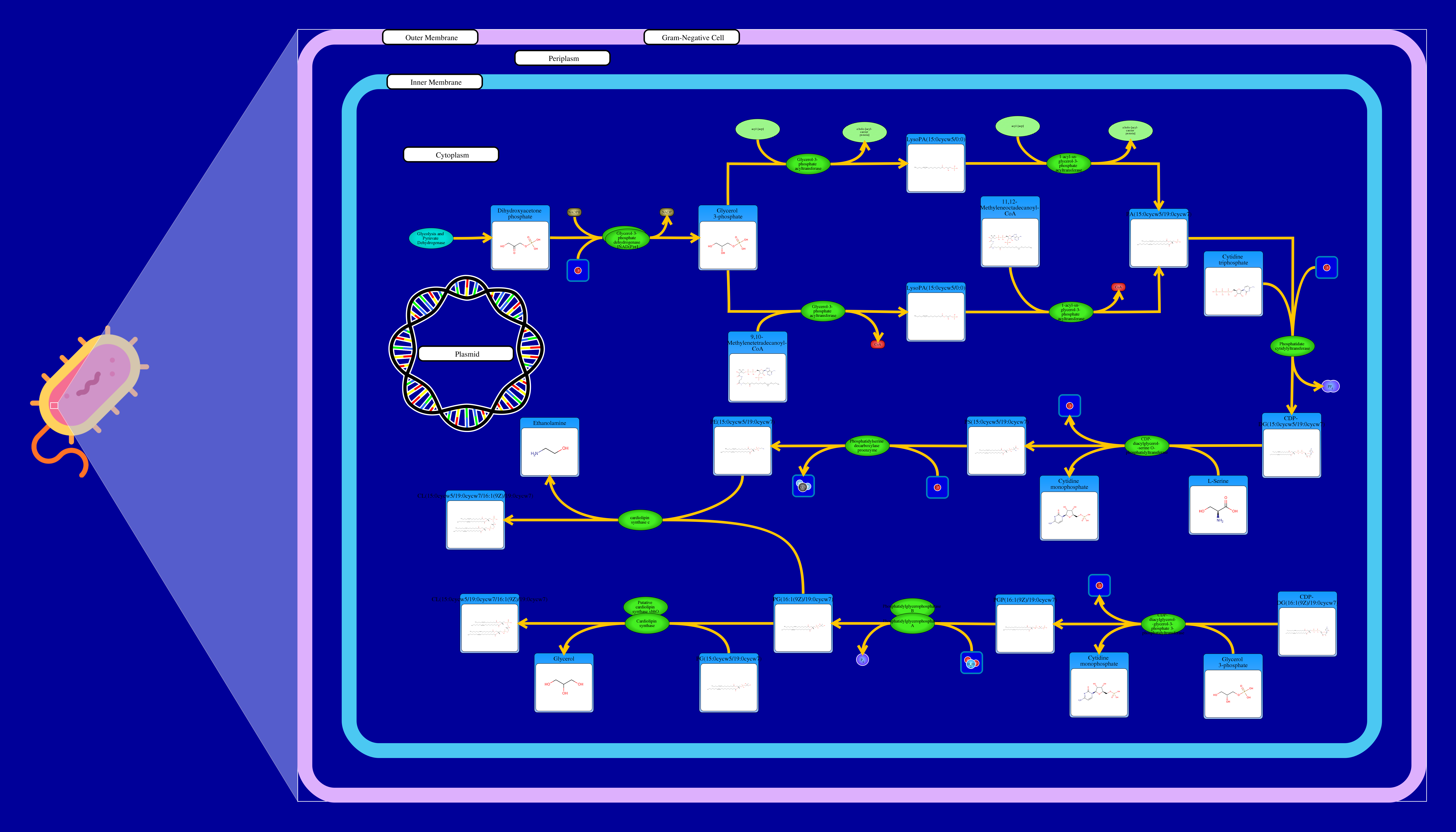 Phospholipids are membrane components in E. coli. The major phospholipids of E. coli are phosphatidylethanolamine, phosphatidylglycerol, and cardiolipin. All phospholipids contain sn-glycerol-3-phosphate esterified with fatty acids at the sn-1 and sn-2 positions. The reaction starts from a glycerone phosphate (dihydroxyacetone phosphate) produced in glycolysis. The glycerone phosphate is transformed into an sn-glycerol 3-phosphate (glycerol 3 phosphate) by NADPH-driven glycerol-3-phosphate dehydrogenase. sn-Glycerol 3-phosphate is transformed to a 1-acyl-sn-glycerol 3-phosphate (lysophosphatidic acid). This can be achieved by an sn-glycerol-3-phosphate acyltransferase that interacts either with a long-chain acyl-CoA or with an acyl-[acp]. The 1-acyl-sn-glycerol 3-phosphate is transformed into a 1,2-diacyl-sn-glycerol 3-phosphate (phosphatidic acid) through a 1-acylglycerol-3-phosphate O-acyltransferase. This compound is then converted into a CPD-diacylglycerol through a CTP phosphatidate cytididyltransferase. CPD-diacylglycerol can be transformed either into an L-1-phosphatidylserine or an L-1-phosphatidylglycerol-phosphate through a phosphatidylserine synthase or a phosphatidylglycerophosphate synthase, respectively. The L-1-phosphatidylserine transforms into L-1-phosphatidylethanolamine through a phosphatidylserine decarboxylase. On the other hand, L-1-phosphatidylglycerol-phosphate gets transformed into an L-1-phosphatidyl-glycerol through a phosphatidylglycerophosphatase. These 2 products combine to produce a cardiolipin and an ethanolamine. The L-1 phosphatidyl-glycerol can also interact with cardiolipin synthase resulting in a glycerol and a cardiolipin.