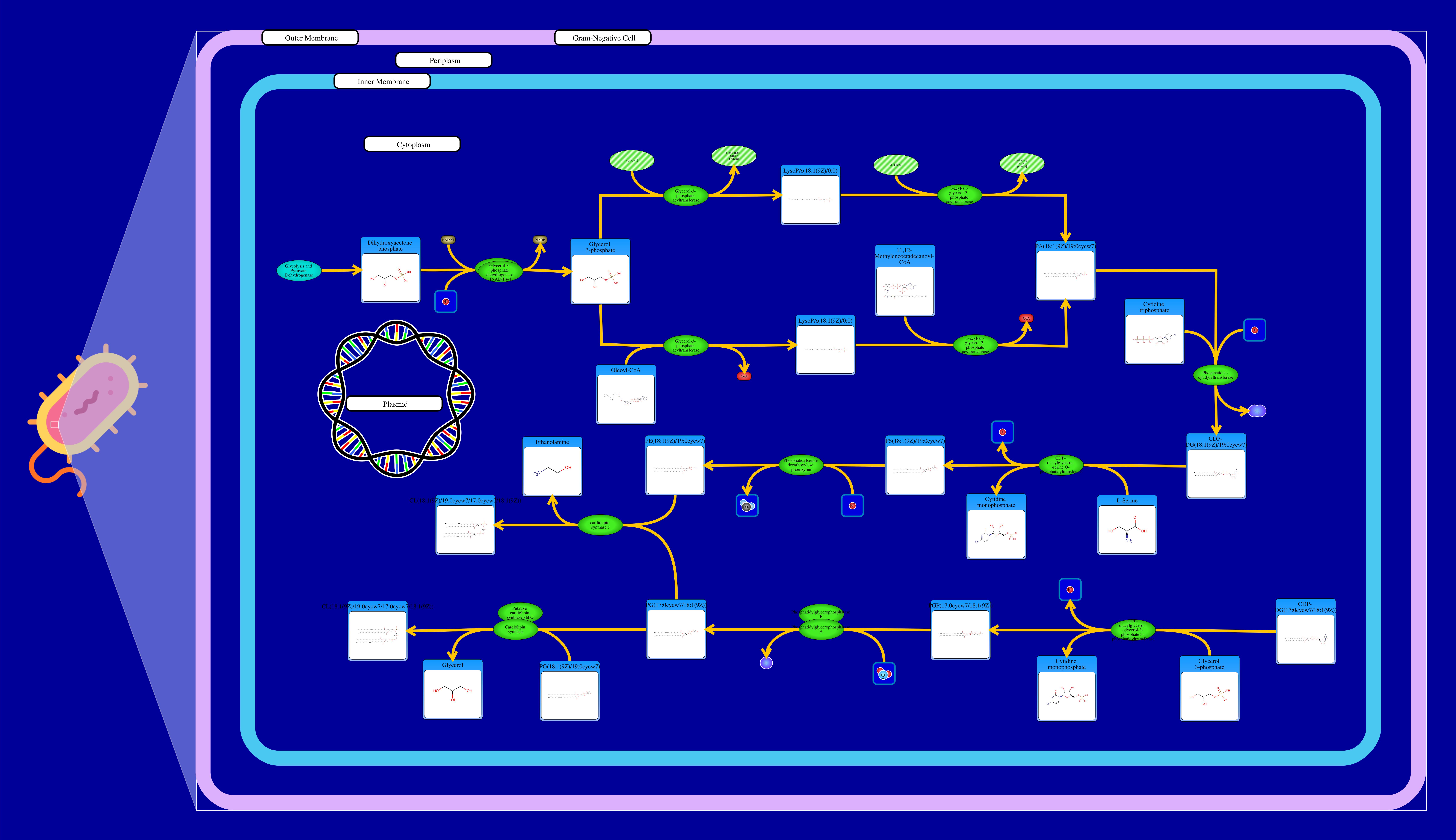Phospholipids are membrane components in E. coli. The major phospholipids of E. coli are phosphatidylethanolamine, phosphatidylglycerol, and cardiolipin. All phospholipids contain sn-glycerol-3-phosphate esterified with fatty acids at the sn-1 and sn-2 positions. The reaction starts from a glycerone phosphate (dihydroxyacetone phosphate) produced in glycolysis. The glycerone phosphate is transformed into an sn-glycerol 3-phosphate (glycerol 3 phosphate) by NADPH-driven glycerol-3-phosphate dehydrogenase. sn-Glycerol 3-phosphate is transformed to a 1-acyl-sn-glycerol 3-phosphate (lysophosphatidic acid). This can be achieved by an sn-glycerol-3-phosphate acyltransferase that interacts either with a long-chain acyl-CoA or with an acyl-[acp]. The 1-acyl-sn-glycerol 3-phosphate is transformed into a 1,2-diacyl-sn-glycerol 3-phosphate (phosphatidic acid) through a 1-acylglycerol-3-phosphate O-acyltransferase. This compound is then converted into a CPD-diacylglycerol through a CTP phosphatidate cytididyltransferase. CPD-diacylglycerol can be transformed either into an L-1-phosphatidylserine or an L-1-phosphatidylglycerol-phosphate through a phosphatidylserine synthase or a phosphatidylglycerophosphate synthase, respectively. The L-1-phosphatidylserine transforms into L-1-phosphatidylethanolamine through a phosphatidylserine decarboxylase. On the other hand, L-1-phosphatidylglycerol-phosphate gets transformed into an L-1-phosphatidyl-glycerol through a phosphatidylglycerophosphatase. These 2 products combine to produce a cardiolipin and an ethanolamine. The L-1 phosphatidyl-glycerol can also interact with cardiolipin synthase resulting in a glycerol and a cardiolipin.