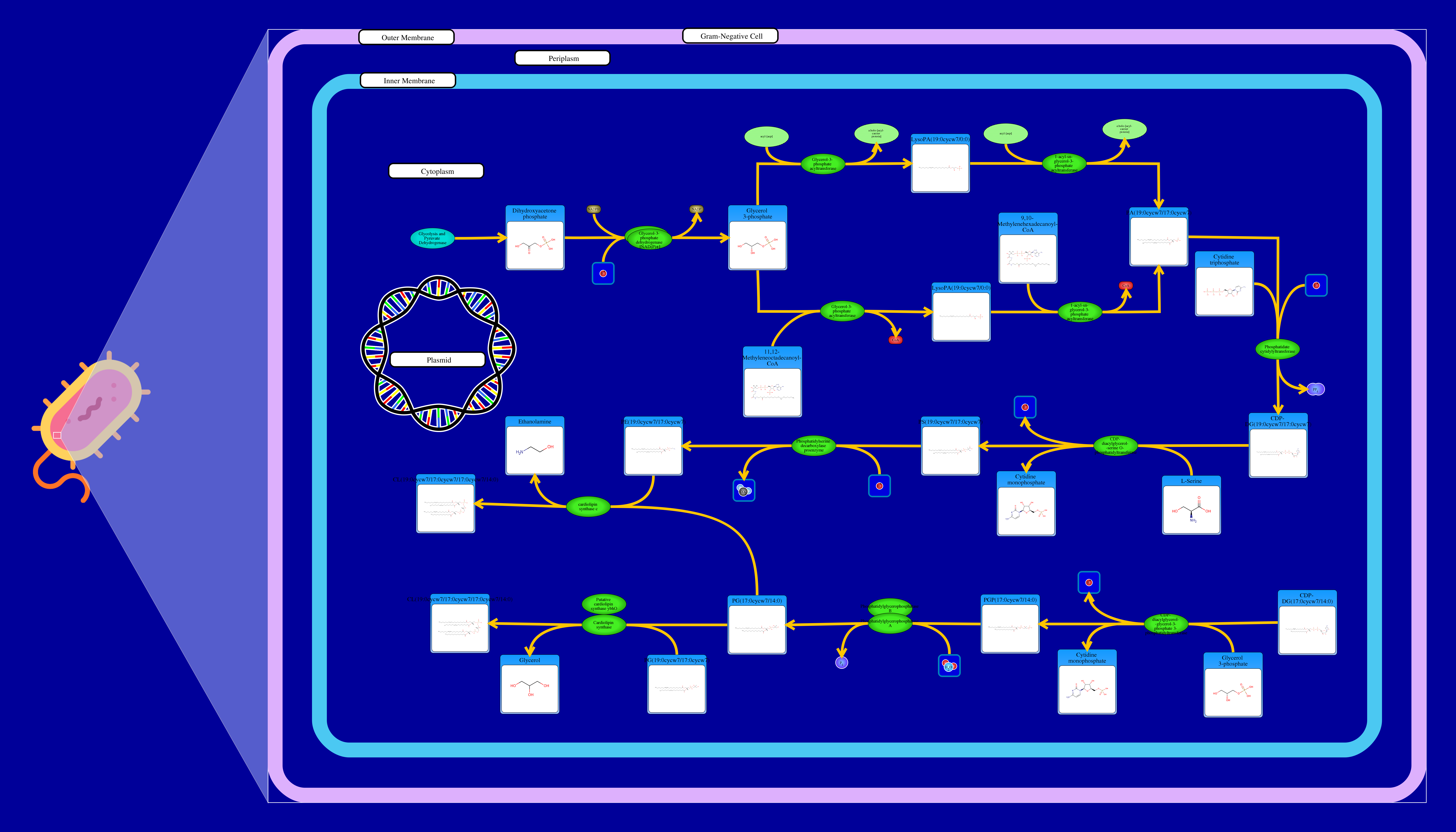 Phospholipids are membrane components in E. coli. The major phospholipids of E. coli are phosphatidylethanolamine, phosphatidylglycerol, and cardiolipin. All phospholipids contain sn-glycerol-3-phosphate esterified with fatty acids at the sn-1 and sn-2 positions. The reaction starts from a glycerone phosphate (dihydroxyacetone phosphate) produced in glycolysis. The glycerone phosphate is transformed into an sn-glycerol 3-phosphate (glycerol 3 phosphate) by NADPH-driven glycerol-3-phosphate dehydrogenase. sn-Glycerol 3-phosphate is transformed to a 1-acyl-sn-glycerol 3-phosphate (lysophosphatidic acid). This can be achieved by an sn-glycerol-3-phosphate acyltransferase that interacts either with a long-chain acyl-CoA or with an acyl-[acp]. The 1-acyl-sn-glycerol 3-phosphate is transformed into a 1,2-diacyl-sn-glycerol 3-phosphate (phosphatidic acid) through a 1-acylglycerol-3-phosphate O-acyltransferase. This compound is then converted into a CPD-diacylglycerol through a CTP phosphatidate cytididyltransferase. CPD-diacylglycerol can be transformed either into an L-1-phosphatidylserine or an L-1-phosphatidylglycerol-phosphate through a phosphatidylserine synthase or a phosphatidylglycerophosphate synthase, respectively. The L-1-phosphatidylserine transforms into L-1-phosphatidylethanolamine through a phosphatidylserine decarboxylase. On the other hand, L-1-phosphatidylglycerol-phosphate gets transformed into an L-1-phosphatidyl-glycerol through a phosphatidylglycerophosphatase. These 2 products combine to produce a cardiolipin and an ethanolamine. The L-1 phosphatidyl-glycerol can also interact with cardiolipin synthase resulting in a glycerol and a cardiolipin.
