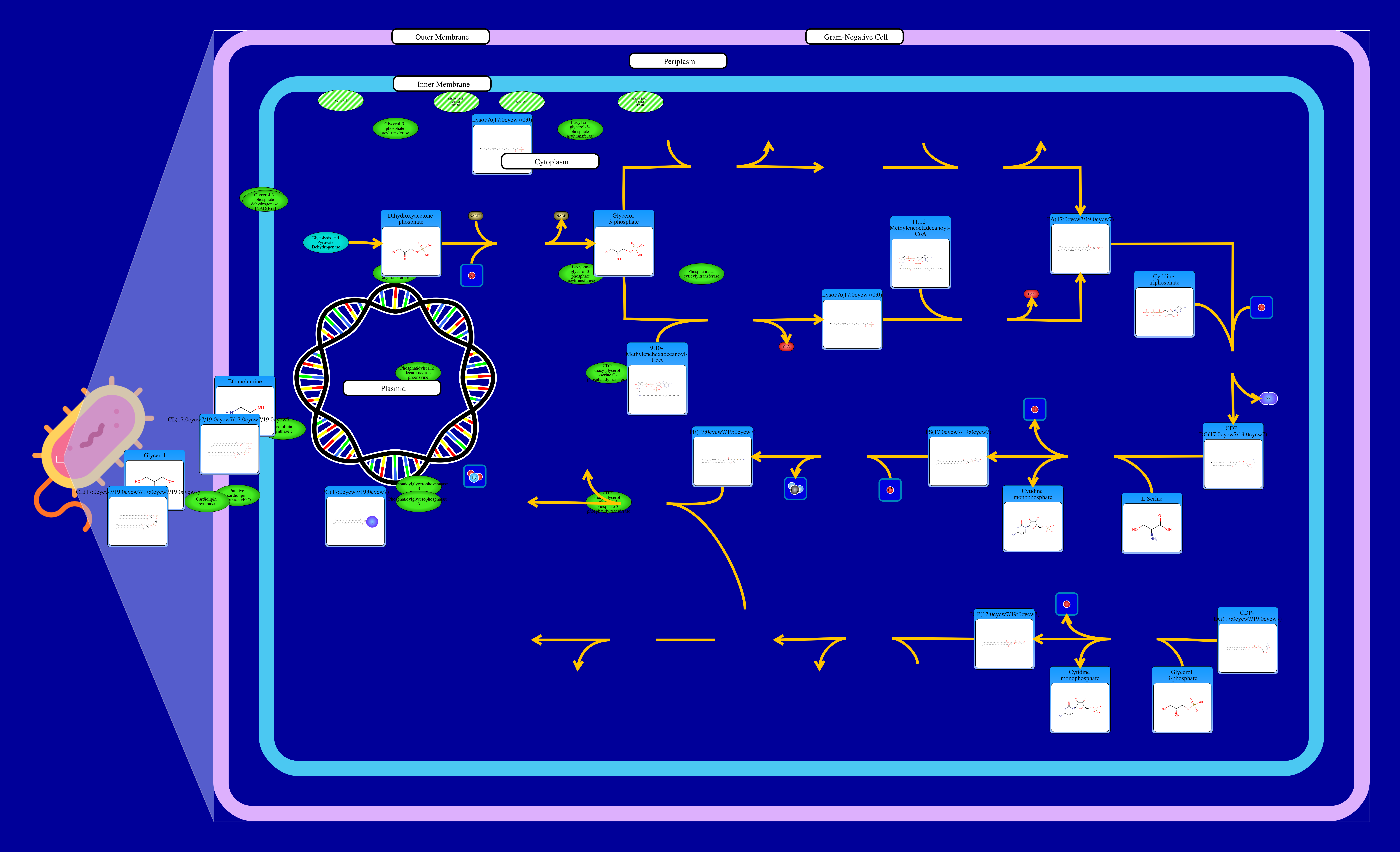 Phospholipids are membrane components in E. coli. The major phospholipids of E. coli are phosphatidylethanolamine, phosphatidylglycerol, and cardiolipin. All phospholipids contain sn-glycerol-3-phosphate esterified with fatty acids at the sn-1 and sn-2 positions. The reaction starts from a glycerone phosphate (dihydroxyacetone phosphate) produced in glycolysis. The glycerone phosphate is transformed into an sn-glycerol 3-phosphate (glycerol 3 phosphate) by NADPH-driven glycerol-3-phosphate dehydrogenase. sn-Glycerol 3-phosphate is transformed to a 1-acyl-sn-glycerol 3-phosphate (lysophosphatidic acid). This can be achieved by an sn-glycerol-3-phosphate acyltransferase that interacts either with a long-chain acyl-CoA or with an acyl-[acp]. The 1-acyl-sn-glycerol 3-phosphate is transformed into a 1,2-diacyl-sn-glycerol 3-phosphate (phosphatidic acid) through a 1-acylglycerol-3-phosphate O-acyltransferase. This compound is then converted into a CPD-diacylglycerol through a CTP phosphatidate cytididyltransferase. CPD-diacylglycerol can be transformed either into an L-1-phosphatidylserine or an L-1-phosphatidylglycerol-phosphate through a phosphatidylserine synthase or a phosphatidylglycerophosphate synthase, respectively. The L-1-phosphatidylserine transforms into L-1-phosphatidylethanolamine through a phosphatidylserine decarboxylase. On the other hand, L-1-phosphatidylglycerol-phosphate gets transformed into an L-1-phosphatidyl-glycerol through a phosphatidylglycerophosphatase. These 2 products combine to produce a cardiolipin and an ethanolamine. The L-1 phosphatidyl-glycerol can also interact with cardiolipin synthase resulting in a glycerol and a cardiolipin.