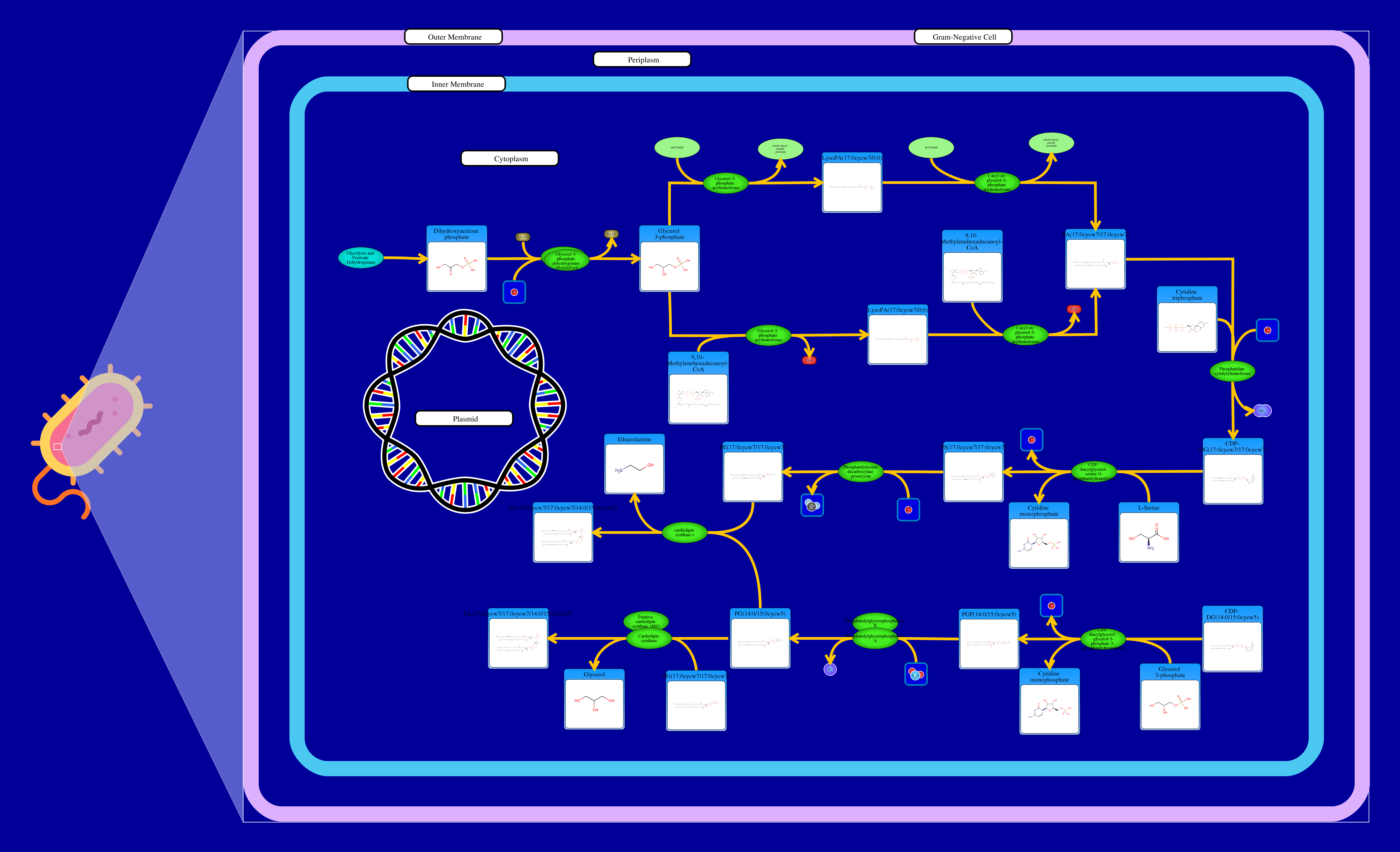 Phospholipids are membrane components in E. coli. The major phospholipids of E. coli are phosphatidylethanolamine, phosphatidylglycerol, and cardiolipin. All phospholipids contain sn-glycerol-3-phosphate esterified with fatty acids at the sn-1 and sn-2 positions. The reaction starts from a glycerone phosphate (dihydroxyacetone phosphate) produced in glycolysis. The glycerone phosphate is transformed into an sn-glycerol 3-phosphate (glycerol 3 phosphate) by NADPH-driven glycerol-3-phosphate dehydrogenase. sn-Glycerol 3-phosphate is transformed to a 1-acyl-sn-glycerol 3-phosphate (lysophosphatidic acid). This can be achieved by an sn-glycerol-3-phosphate acyltransferase that interacts either with a long-chain acyl-CoA or with an acyl-[acp]. The 1-acyl-sn-glycerol 3-phosphate is transformed into a 1,2-diacyl-sn-glycerol 3-phosphate (phosphatidic acid) through a 1-acylglycerol-3-phosphate O-acyltransferase. This compound is then converted into a CPD-diacylglycerol through a CTP phosphatidate cytididyltransferase. CPD-diacylglycerol can be transformed either into an L-1-phosphatidylserine or an L-1-phosphatidylglycerol-phosphate through a phosphatidylserine synthase or a phosphatidylglycerophosphate synthase, respectively. The L-1-phosphatidylserine transforms into L-1-phosphatidylethanolamine through a phosphatidylserine decarboxylase. On the other hand, L-1-phosphatidylglycerol-phosphate gets transformed into an L-1-phosphatidyl-glycerol through a phosphatidylglycerophosphatase. These 2 products combine to produce a cardiolipin and an ethanolamine. The L-1 phosphatidyl-glycerol can also interact with cardiolipin synthase resulting in a glycerol and a cardiolipin.