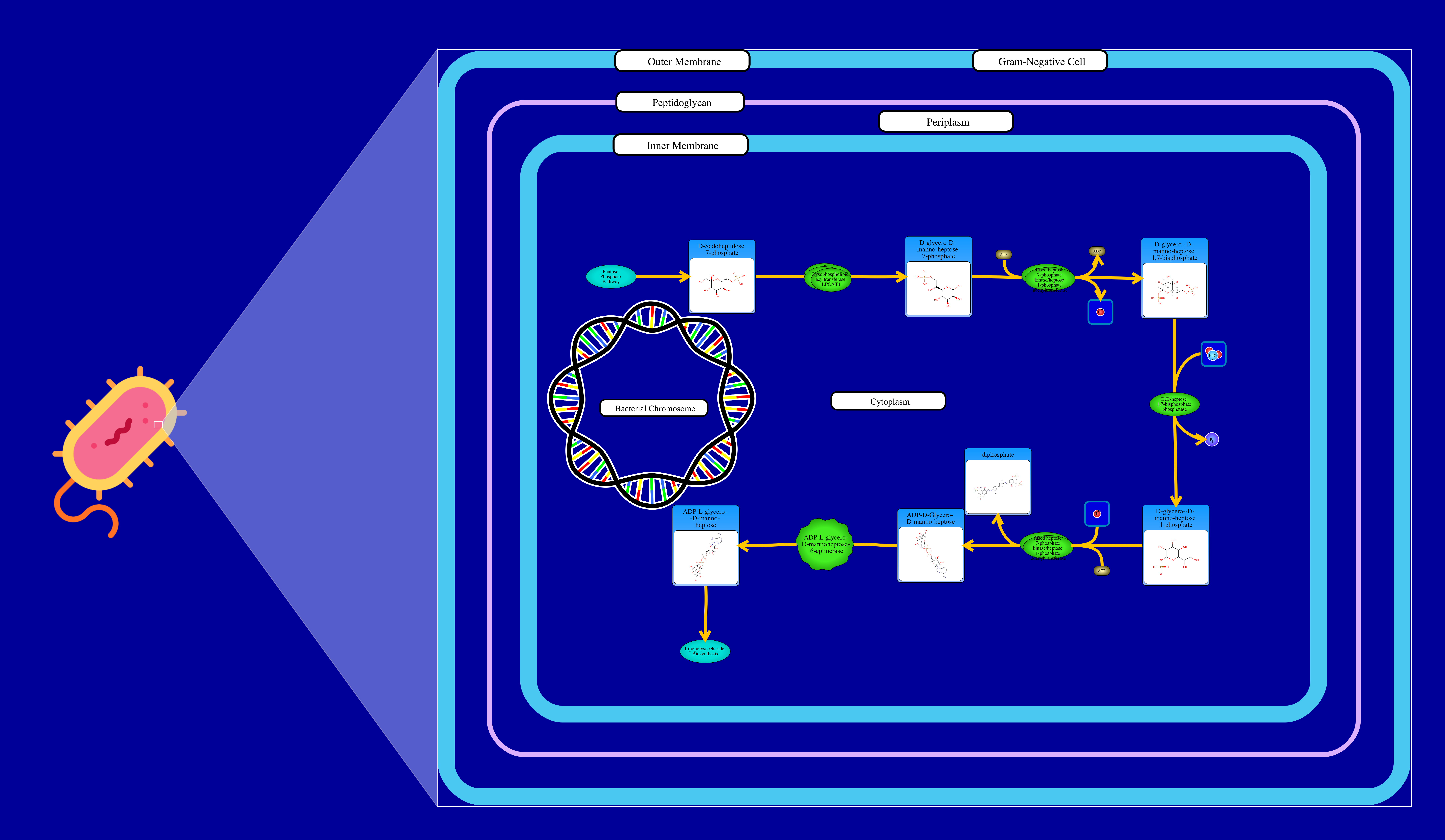 ADP-L-glycero-β-D-manno-heptose is a precursor for the inner core lipopolysaccharide (LPS), which is the outer membrane of Gram-negative bacteria. LPS is consisted of lipid A, a core oligosaccharide, and an O-specific polysaccharide (O antigen). This biosynthesis pathway starts with catalyzation of D-sedoheptulose 7-phosphate that produced from pentose phosphate pathway to form D-glycero-D-manno-heptose 7-phosphate by lysophospholipid acyltransferase. D-glycero-D-manno-heptose 7-phosphate later undergoes catalyze to form D-glycero-β-D-manno-heptose 1,7-bisphosphate by fused heptose 7-phosphate kinase (also known as heptose 1-phosphate adenyltransferase) that powered by ATP. D-glycero-β-D-manno-heptose 1,7-bisphosphate will go through hydrolysis by D,D-heptose 1,7-bisphosphate phosphatase to form D-glycero-β-D-manno-heptose 1-phosphate and a phosphate. D-glycero-β-D-manno-heptose 1-phosphate will form ADP-D-Glycero-D-manno-heptose and diphosphate, and eventually ADP-D-Glycero-D-manno-heptose will be biotransformed to ADP-L-glycero-β-D-manno-heptose as the end product of this pathway by ADP-L-glycero-D-mannoheptose-6-epimerase.