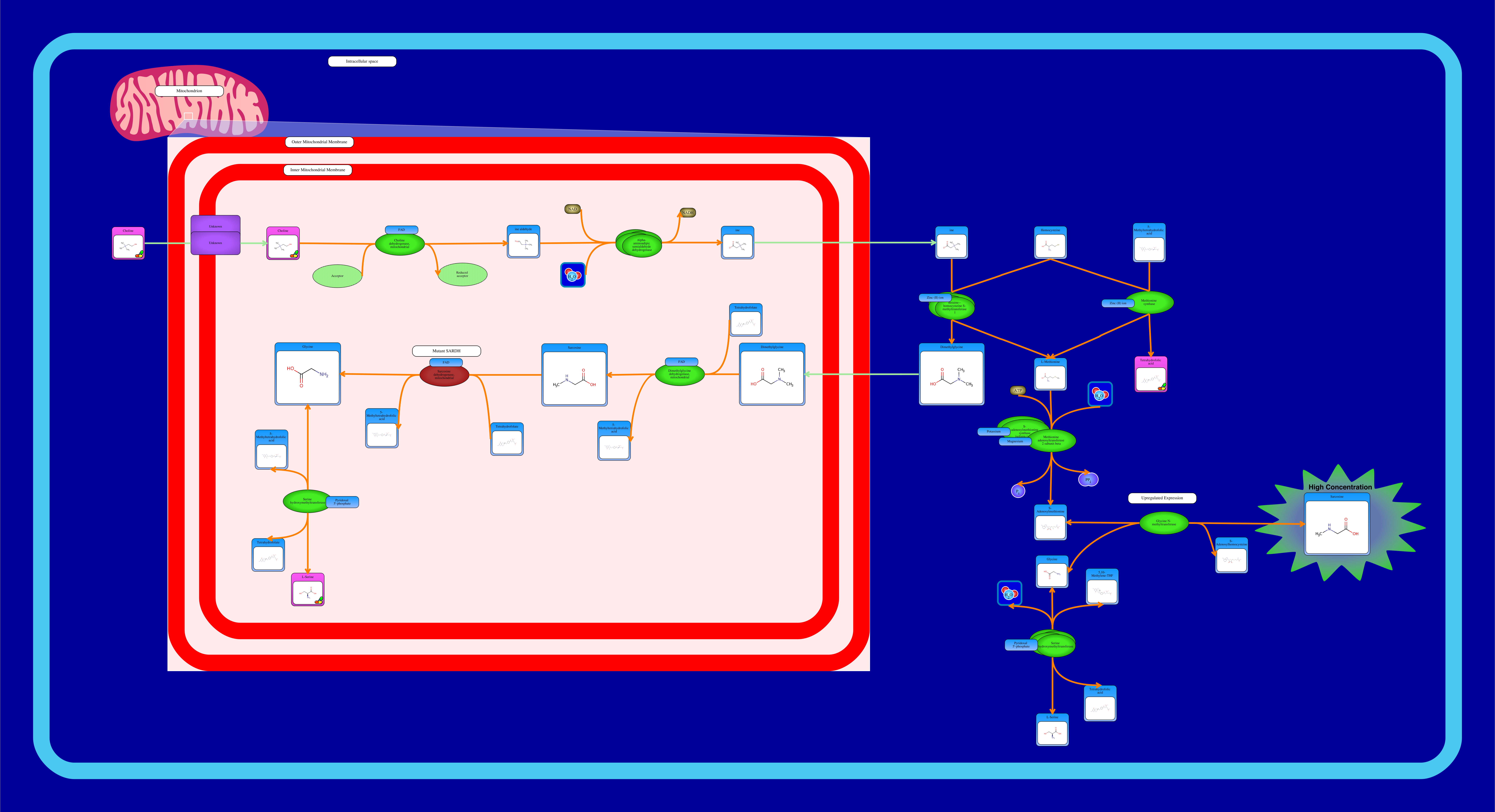 This pathway begins with choline’s transport into the mitochondrial matrix via xolute carrier family protein 44 A1 and the choline transporter-like protein 2. Once in the matrix, choline is oxidized to betaine aldehyde by choline dehydrogenase, and in the process reduces an acceptor. Betaine aldehyde is then converted to betaine by the addition of a water molecule by alpha-aminoadipic semialdehyde dehydrogenase. Following this, betaine is transported out of the mitochondria by an unknown transporter, where it then reacts with homocysteine to form dimethylglycine and L-methionine in a reaction catalyzed by betaine-homocysteine S-methyltransferase 1. The dimethylglycine is then transported back into the mitochondrial matrix by another unknown transporter, where it can react with tetrahydrofolate to form sarcosine and 5-methyltetrahydrofolic acid in a reaction catalyzed by dimethylglycine dehydrogenase. In at least some cases of prostate cancer cells, the SARDH gene is mutated, which encodes the sarcosine dehydrogenase protein. This can lead to an increase of sarcosine in the cells, as sarcosine dehydrogenase typically converts sarcosine to glycine, which is then converted to and from L-serine by serine hydroxymethyltransferase. With a non-functional or less functional enzyme, sarcosine levels will be increased, and serine and glycine levels will be reduced.
