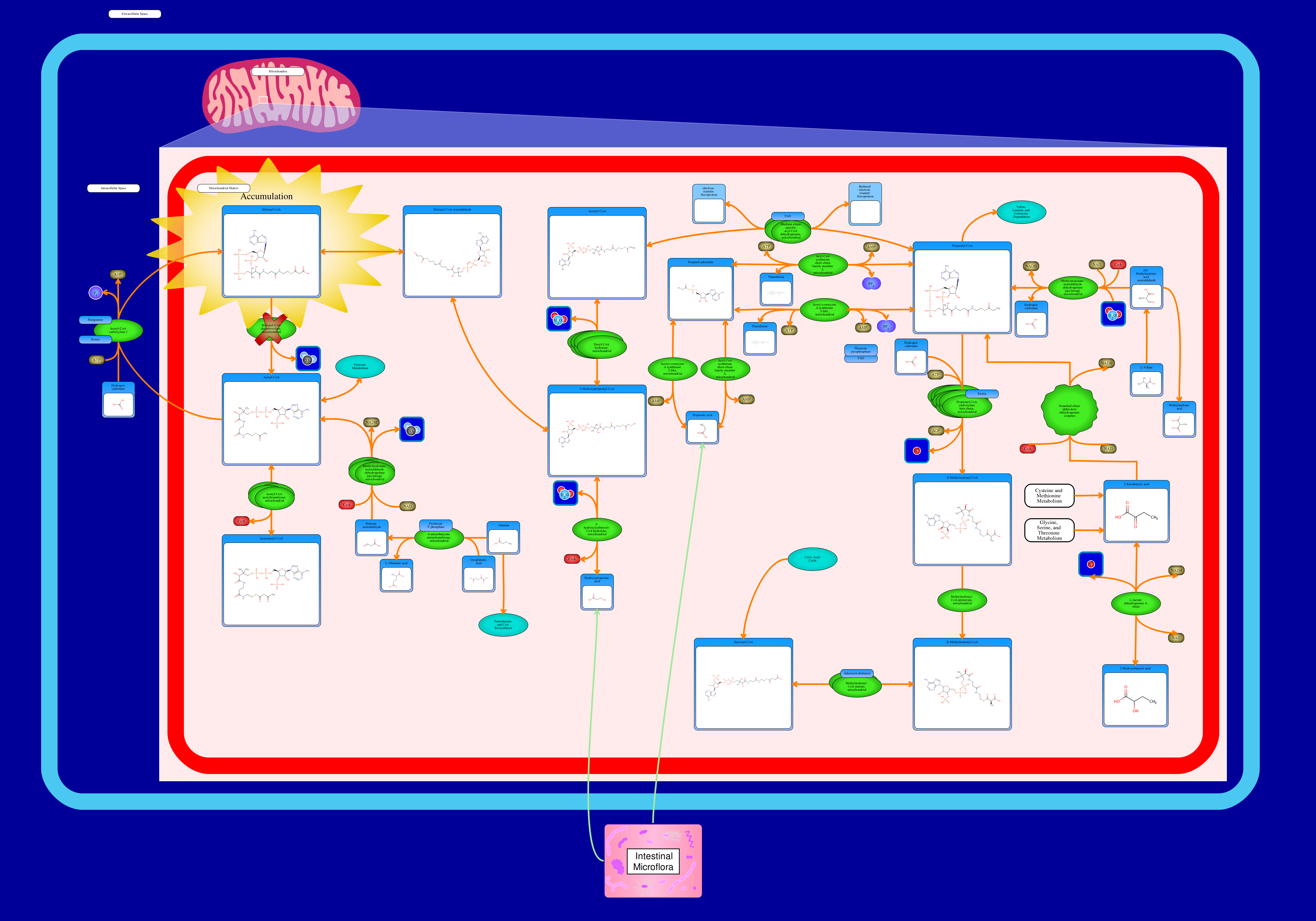 Enter relative concentration values (without units). Elements will be highlighted in a color gradient where red = lowest concentration and green = highest concentration. For the best results, view the pathway in Black and White.