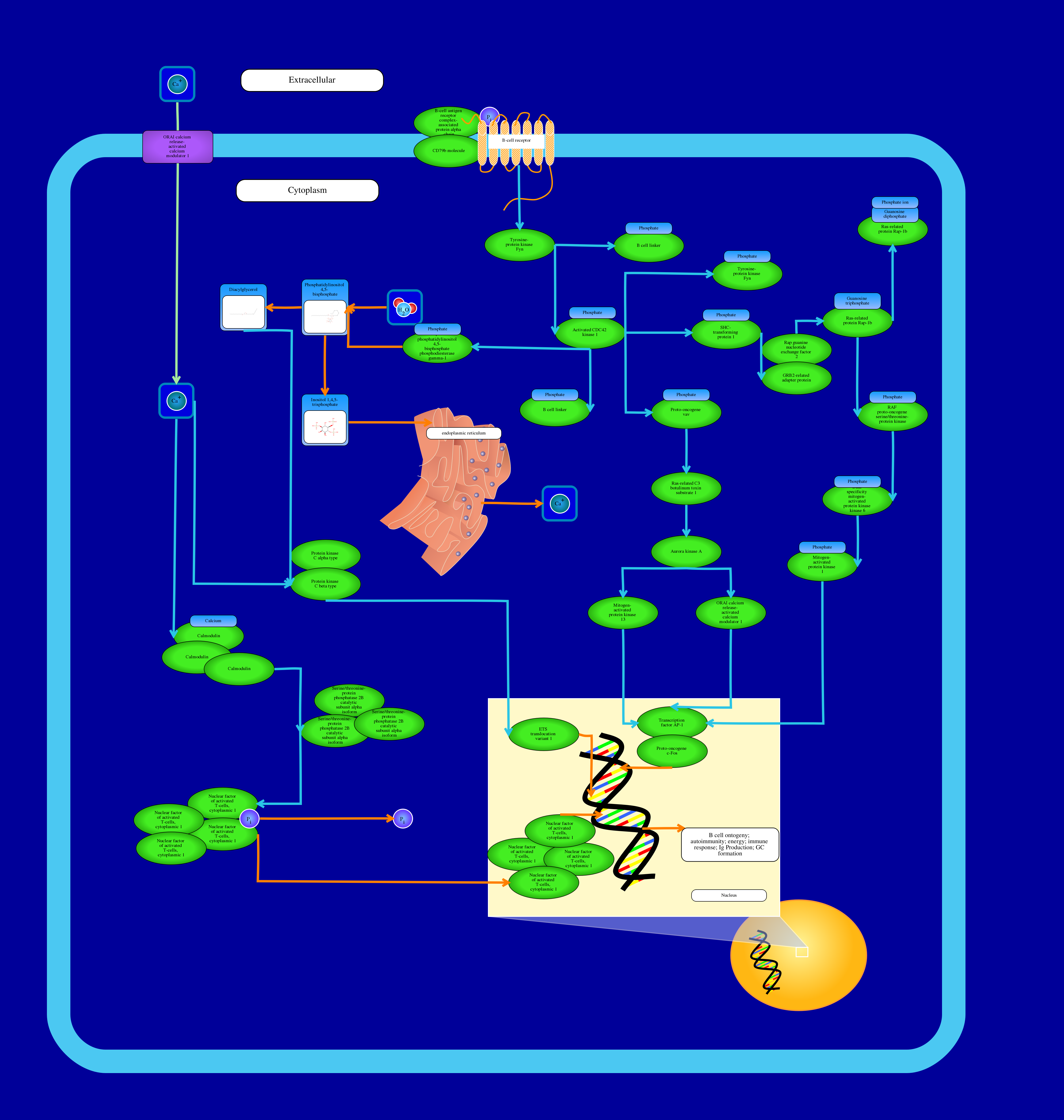 The BCR signalling pathway is a pathway that plays a vital role in the development and all other functions of B-cells, which means it is vital for the immune response. The BCR, also known as the B-cell receptor, is usually found on the outer membrane of B-cells. B-cells grab antigens from immune synapses, through a number of processes including cell spreading and receptor transport. After these have been performed, endocytosis and antigen-presentation occur. B-cells manipulate the dynamic of BCR-antigen bonds. They group and spread the antigen, increasing the relation with BCR, which creates sensitivity. The two main functions of the BCR pathway is to signal transduction, and the second is to prepare the antigen for processing by the helper T cells. Any defects in this pathway may lead to the patient being immunodeficient, or having B-cell malignancy.