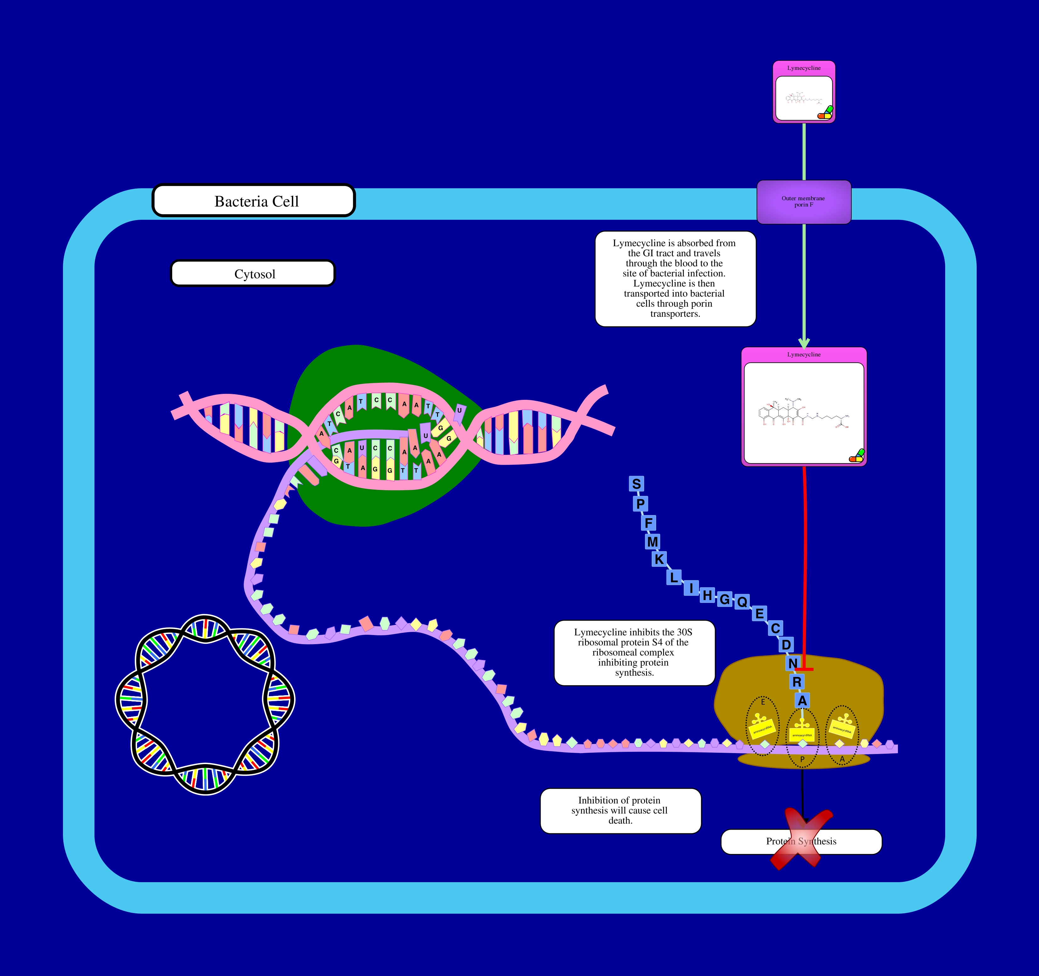 Lymecycline, like other tetracyclines, exerts bacteriostatic actions on intracellular and extracellular bacteria, treating susceptible bacterial infections.9 It has been shown to be safe and effective in the treatment of moderate to severe acne. A caution when using is that lymecycline may cause esophageal irritation and ulceration. This can be prevented by drinking adequate fluids during administration. It also has the potential to cause photosensitivity and lead to renal tubular acidosis or hepatic toxicity. Patients with renal disease or severe hepatic disease should not be given this drug.