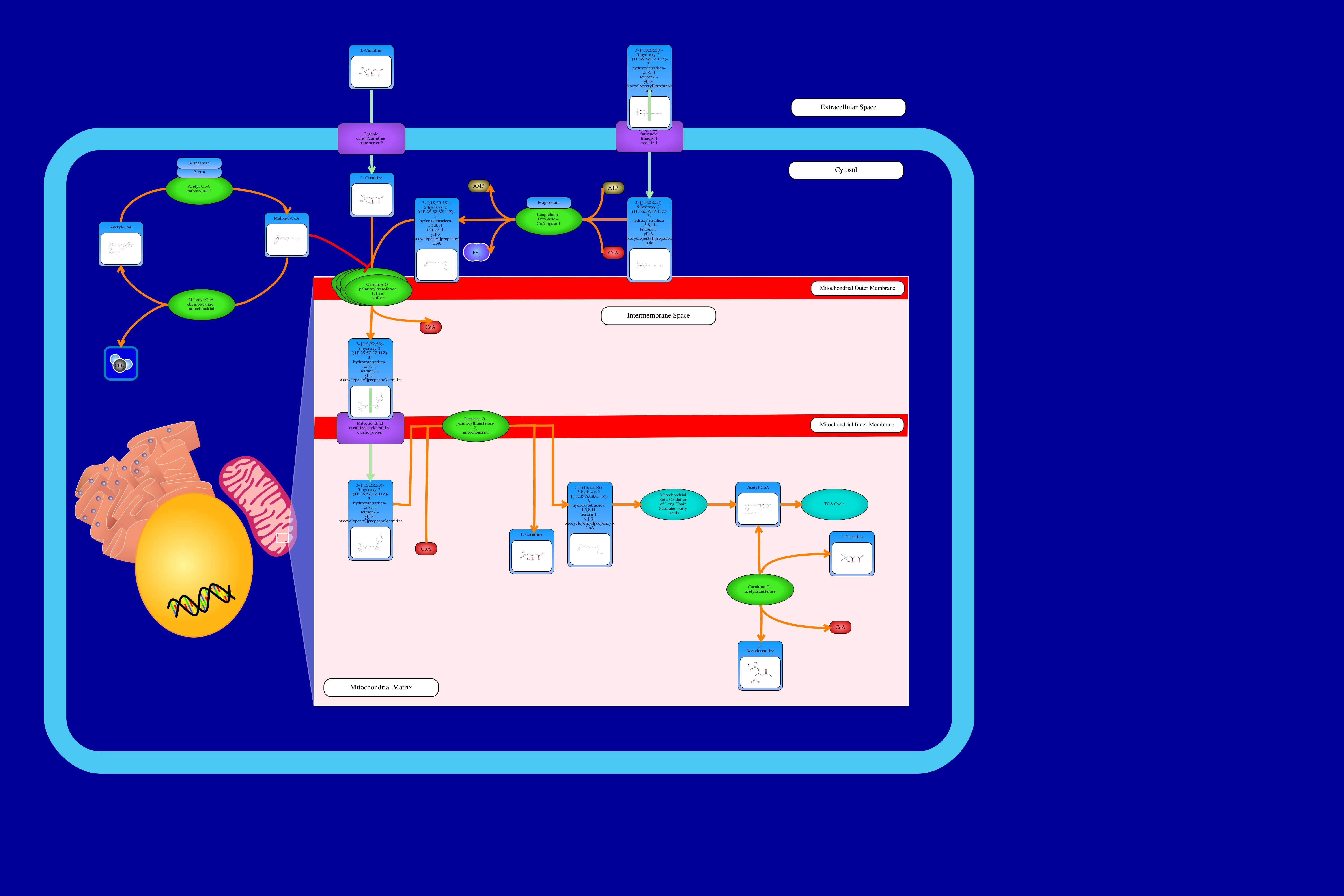 Enter relative concentration values (without units). Elements will be highlighted in a color gradient where red = lowest concentration and green = highest concentration. For the best results, view the pathway in Black and White.