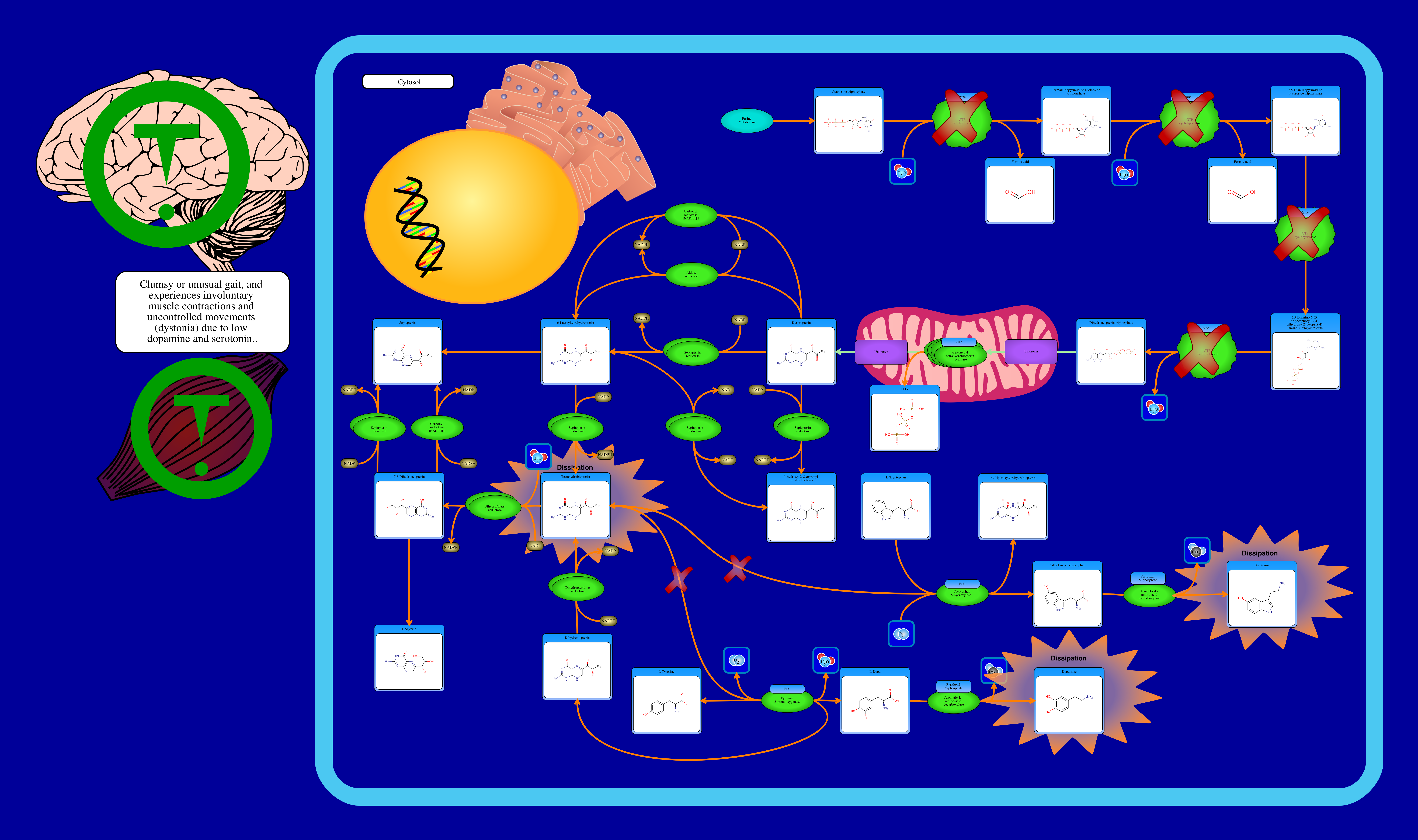 Segawa syndrome is a condition in which the affected individual has a clumsy or unusual gait, and experiences involuntary muscle contractions and uncontrolled movements (dystonia). Some cases are mild, while others can be severe. The beginning signs of this condition are dystonia in the legs, and clubfeet. The cause of this condition is a mutation in the GCH1 gene. Tetrahydrobiopterin is an important compound in the production of neurotransmitters, specifically dopamine and serotonin, and the processing of quite a few amino acids, The mutation on GCH1 causes GTP cyclohydrase 1 production to be reduced or absent which causes the first three steps of tetrahydrobiopterin biosynthesis to be compromised. Dopamine is imperative in maintaining smooth muscle movements, which is why patients with Segawa syndrome experience movement problems and an unusual gait.