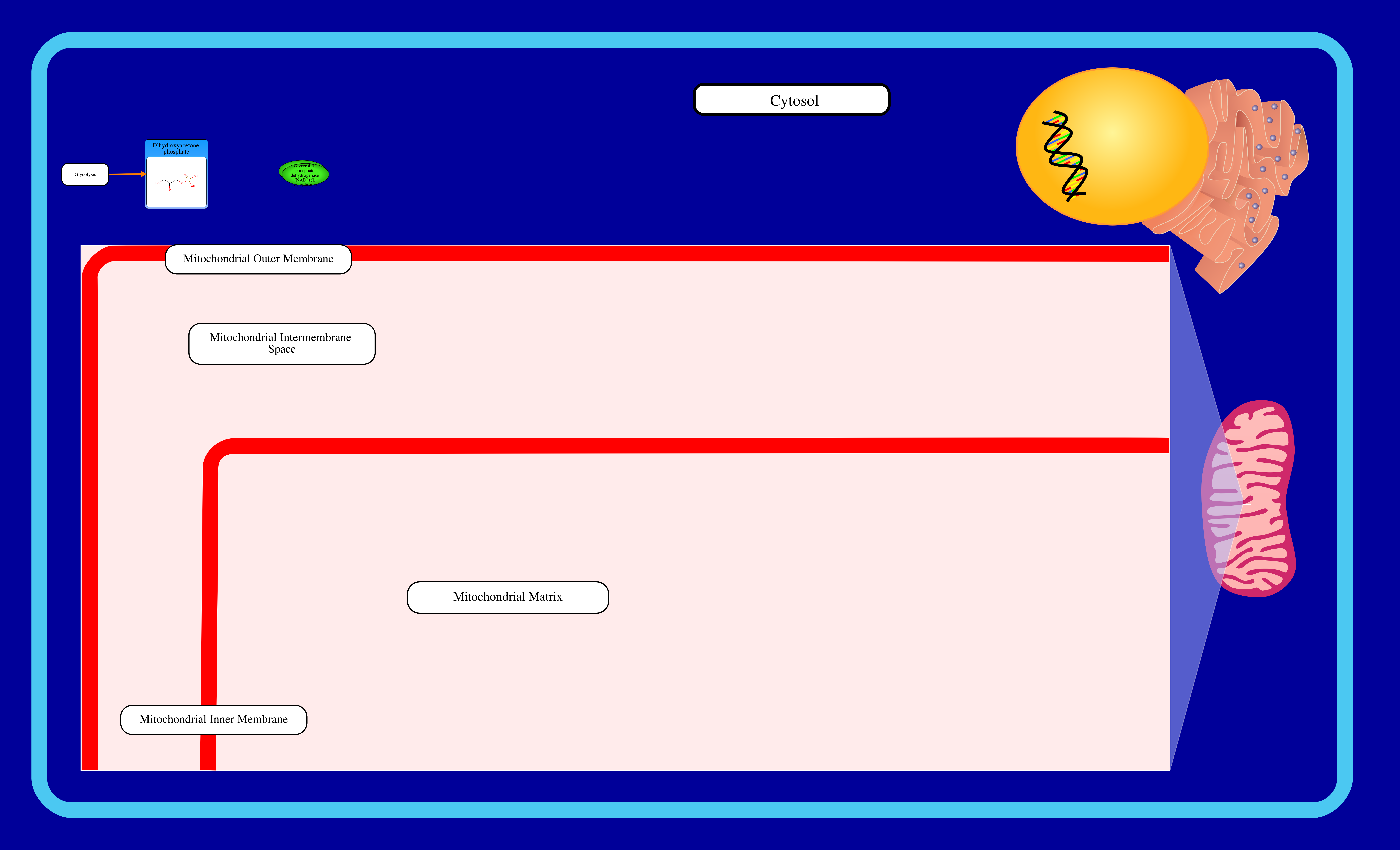 Cardiolipin (CL) is an important component of the inner mitochondrial membrane where it constitutes about 20% of the total lipid composition. It is essential for the optimal function of numerous enzymes that are involved in mitochondrial energy metabolism (Wikipedia). Cardiolipin biosynthesis occurs mainly in the mitochondria, but there also exists an alternative synthesis route for CDP-diacylglycerol that takes place in the endoplasmic reticulum. This second route may supplement this pathway. All membrane-localized enzymes are coloured dark green in the image. First, dihydroxyacetone phosphate (or glycerone phosphate) from glycolysis is used by the cytosolic enzyme glycerol-3-phosphate dehydrogenase [NAD(+)] to synthesize sn-glycerol 3-phosphate. Second, the mitochondrial outer membrane enzyme glycerol-3-phosphate acyltransferase esterifies an acyl-group to the sn-1 position of sn-glycerol 3-phosphate to form 1-acyl-sn-glycerol 3-phosphate (lysophosphatidic acid or LPA). Third, the enzyme 1-acyl-sn-glycerol-3-phosphate acyltransferase converts LPA into phosphatidic acid (PA or 1,2-diacyl-sn-glycerol 3-phosphate) by esterifying an acyl-group to the sn-2 position of the glycerol backbone. PA is then transferred to the inner mitochondrial membrane to continue cardiolipin synthesis. Fourth, magnesium-dependent phosphatidate cytidylyltransferase catalyzes the conversion of PA into CDP-diacylglycerol. Fifth, CDP-diacylglycerol--glycerol-3-phosphate 3-phosphatidyltransferase synthesizes phosphatidylglycerophosphate (PGP). Sixth, phosphatidylglycerophosphatase and protein-tyrosine phosphatase dephosphorylates PGP to form phosphatidylglycerol (PG). Last, cardiolipin synthase catalyzes the synthesis of cardiolipin by transferring a phosphatidyl group from a second CDP-diacylglycerol to PG. It requires a divalent metal cation cofactor.