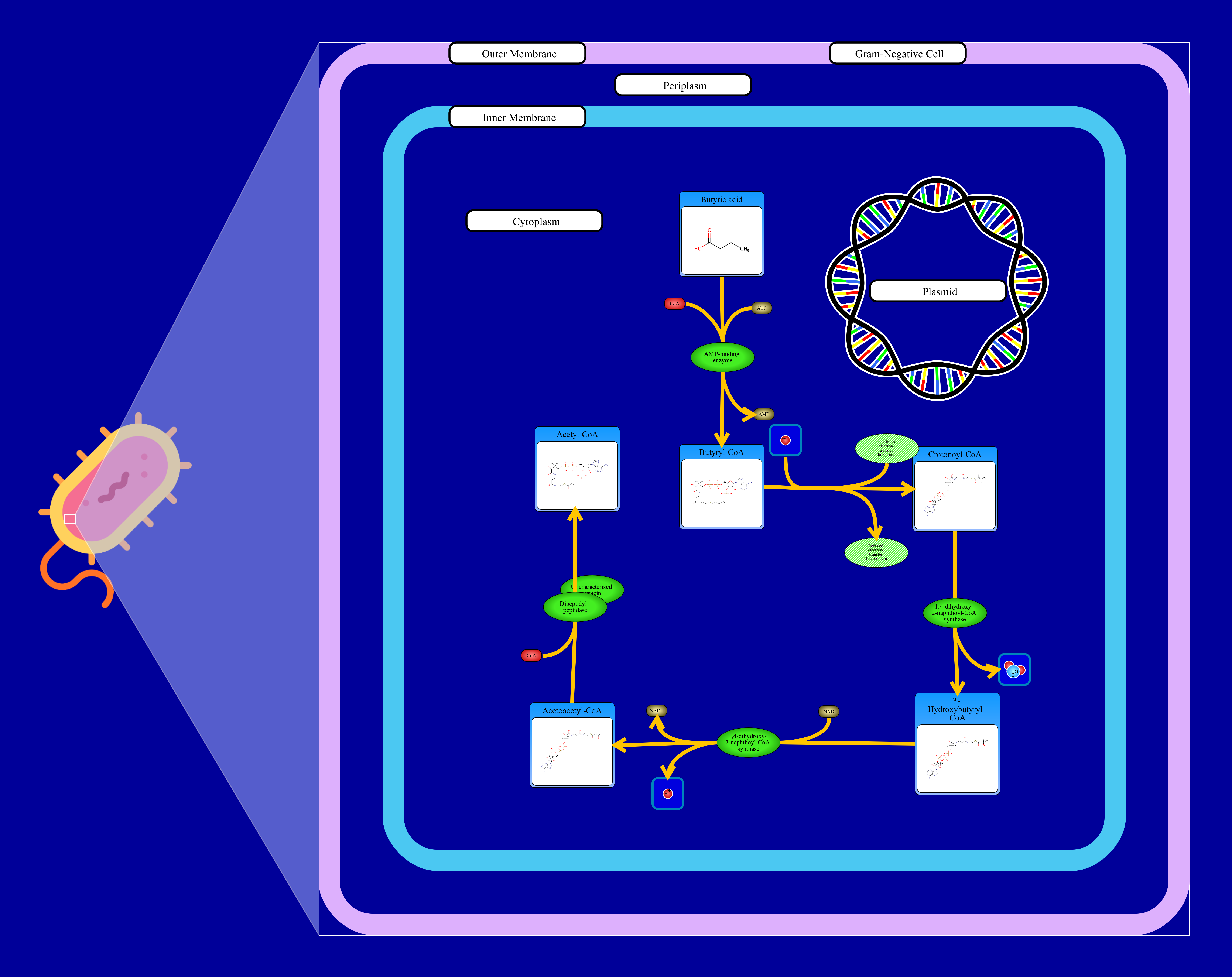 Enter relative concentration values (without units). Elements will be highlighted in a color gradient where red = lowest concentration and green = highest concentration. For the best results, view the pathway in Black and White.