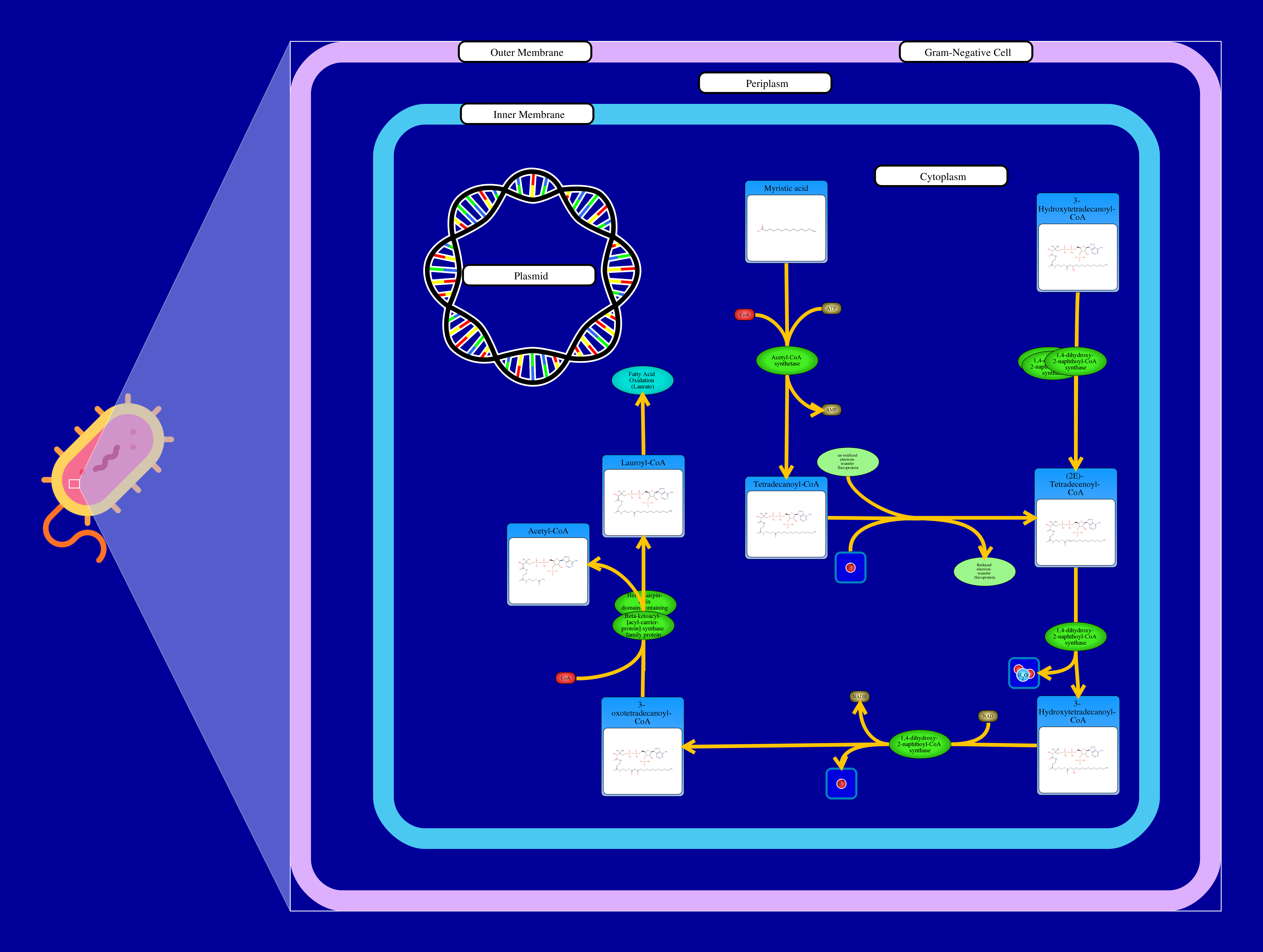 Enter relative concentration values (without units). Elements will be highlighted in a color gradient where red = lowest concentration and green = highest concentration. For the best results, view the pathway in Black and White.
